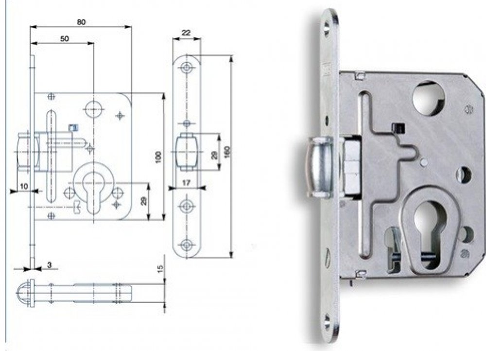 Zámek zadlabací vložkový závorový válečkový Hobes 2784 50/22x160 jednozápadový