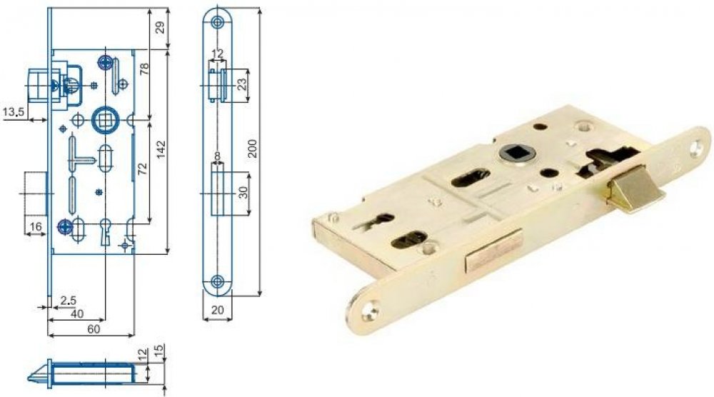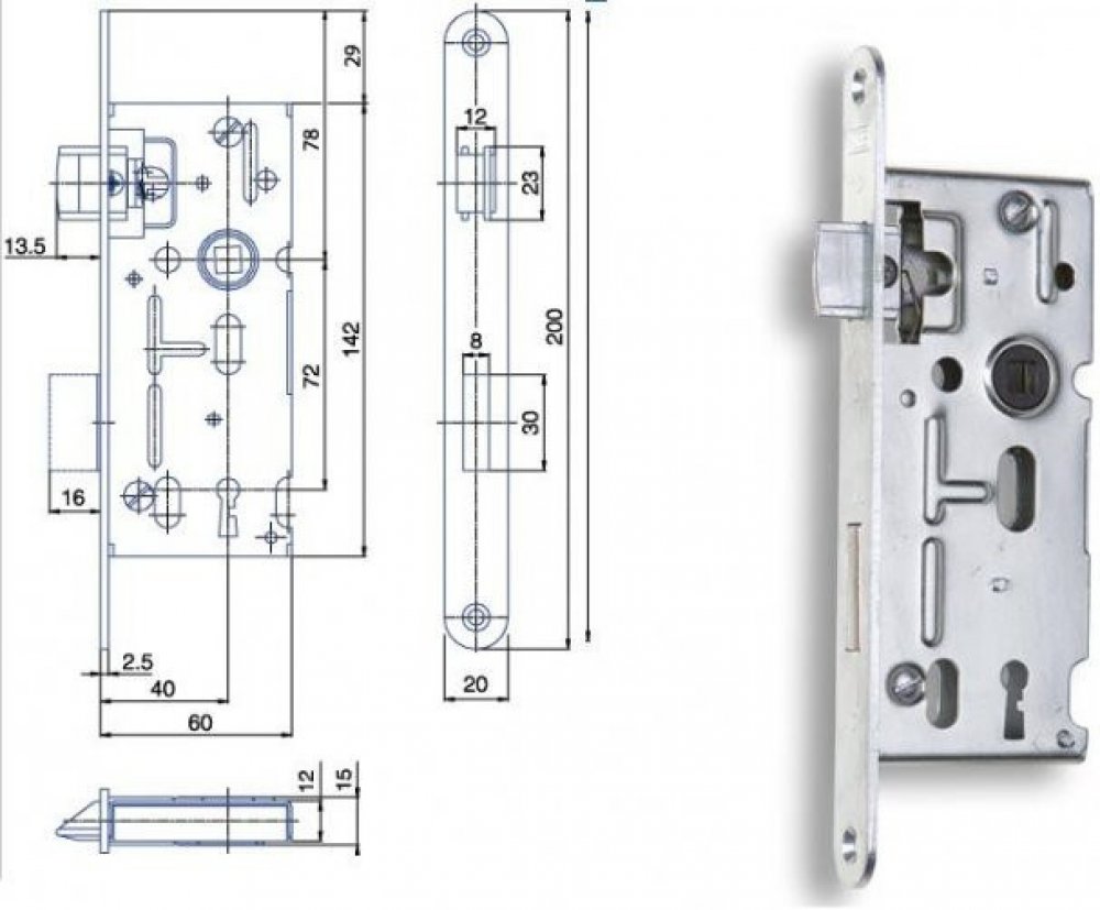 Zámek zadlabací pro dózický klíč HOBES K104 P/L 72/40/20x200 P/L jednozápadový