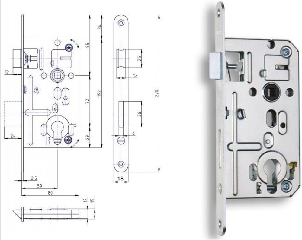 Dvouzápadový zadlabací zámek K133 P-L od značky HOBES je nedílnou součástí dveří, kterým zajistí snadné ovládání a uzamykání. Hodí se pro pravé i levé dveře s roztečí 72 mm. Vybaven je otvorem pro cylindrickou vložku s mechanismem střelky i závory. Zámek se zádlabem 80 mm je vyroben z houževnatého materiálu s ochranou proti korozi díky povrchové úpravě bílý zinek. Odolný materiál tak přispívá k dlouhé životnosti a mechanické odolnosti tohoto funkčního zámku.