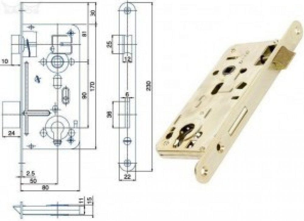 Hobes zadlabací zámek 24026 P-L PZ (cylindrická vložka)