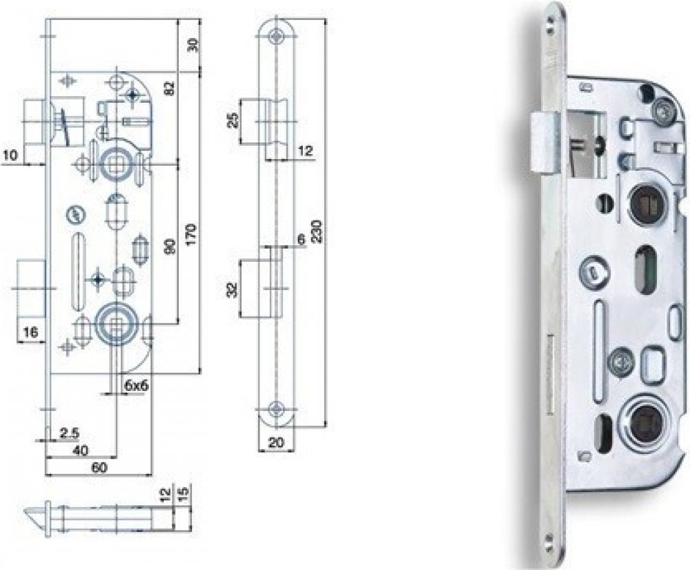 Zadlabací zámek WC Zadlabací zámek mezipokojový WC Hobes 01-16 P-L ( 6x6 )
