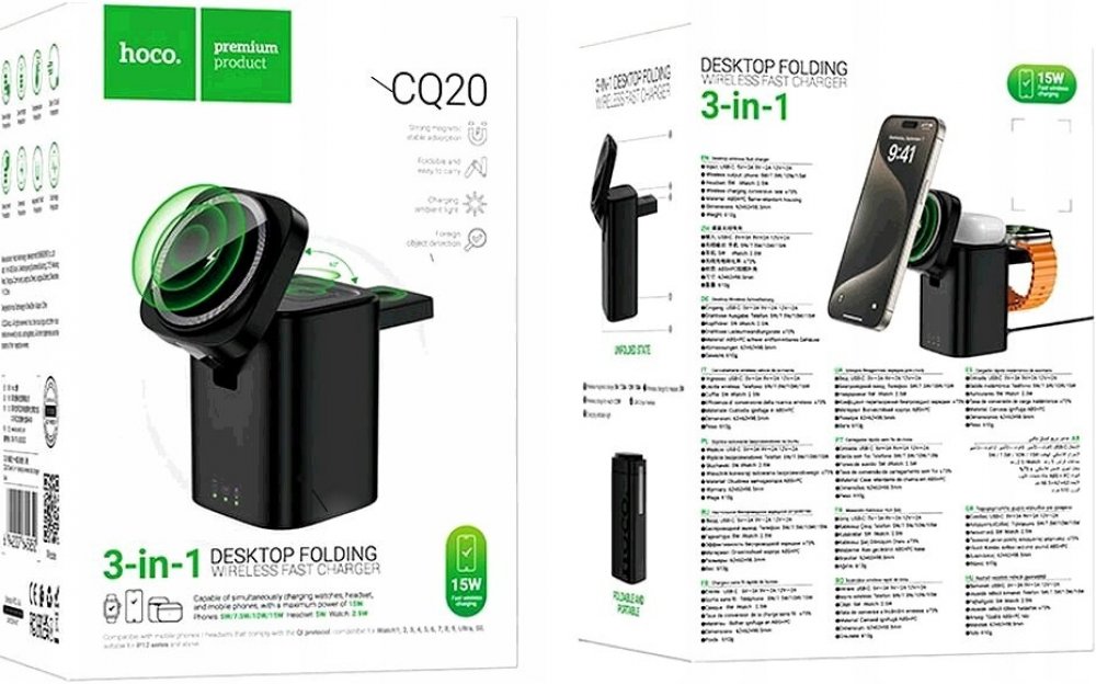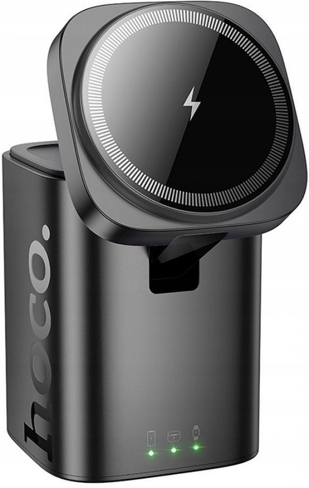 HOCO CQ20 bezdrátová nabíječka MagSafe 3v1 sluchátka, hodinky, telefon / 15W - černá.