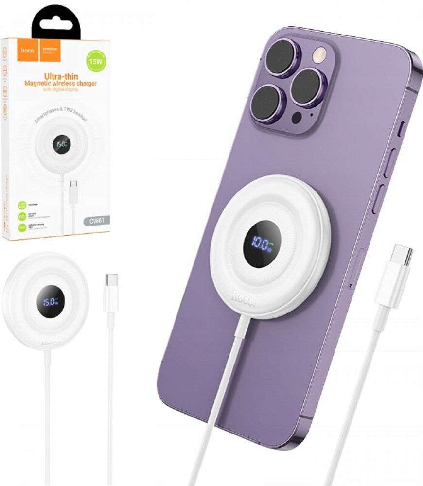 Hoco CW61 je moderní indukční nabíječka, která kombinuje stylový design s účinností nabíjení. Díky kompatibilitě MagSafe a vestavěnému displeji umožňuje rychle a bezpečně nabíjet zařízení v jakékoli situaci.