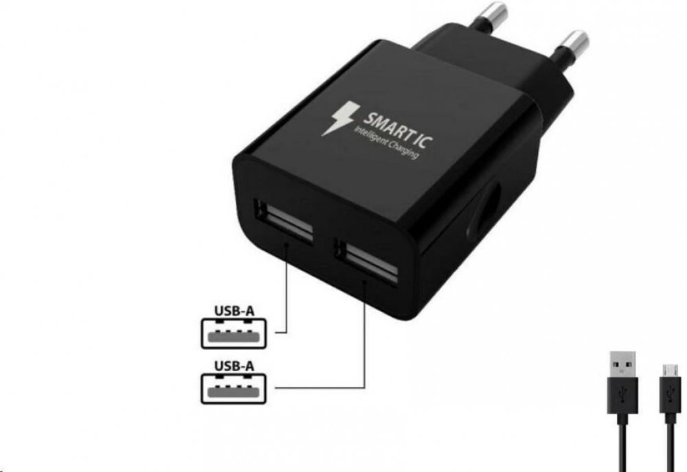 Adaptér do EU zásuvky z kvalitního pevného polykarbonátu hliníku se dvěma výstupními porty s výstupním výkonem až 12 W. Adaptér disponuje ochranou proti zkratu, přepětí, přetížení a přehřátí.