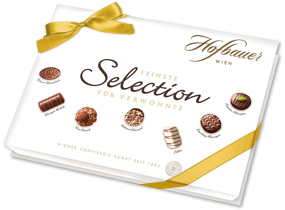 cukr, kakaové máslo, MANDLE, LÍSKOVÉ OŘÍŠKY, kakaová hmota, sušené plnotučné MLÉKO, sušené odstředěné MLÉKO, glukózový sirup, kandovaná pomerančová kůra (pomerančová kůra, glukózo-fruktózový sirup, cukr), sirup z invertního cukru, LAKTÓZA, bezvodý mléčný tuk, rostlinné tuky (palmový, kokosový, bavlníkový, bodlákový, slunečnicový), VLAŠSKÉ OŘECHY, zvlhčující látka (sorbitol, invertáza), MÁSLO, káva, PISTÁCIE, alkohol, vafle (PŠENIČNÁ mouka, kokosový olej, kypřící látka: hydrogenuhličitan sodný, sůl, emulgátor (sójový lecitin), aroma, extrakt z JEČNÉHO sladu, mléčné křupinky (sušené odstředěné MLÉKO, maltodextrin, cukr, modifikovaný škrob: diškrob fosfátu, aroma), vanilkové extrakt, kakaový prášek, leštící átka (arabská guma).
