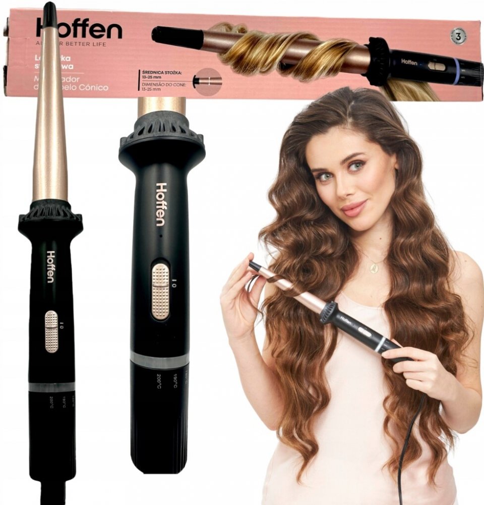 Kuželová kulma značky Hoffen vám umožní vytvořit dokonalé lokny během několika minut. Její kuželovitá konstrukce zatočí vlasy různé tloušťky kadeří. Teplota je regulovatelná v rozsahu od 100 do 200 stupňů, což umožňuje efektivní styling jemných i silných vlasů. Součástí balení je pouzdro s nezahřívajícím se vnitřkem.