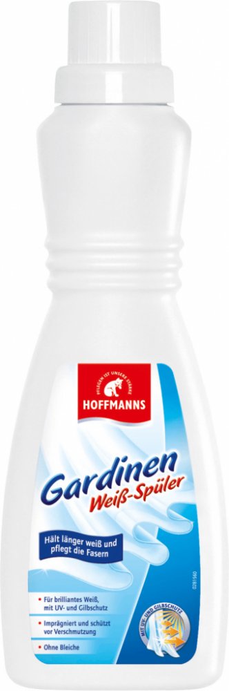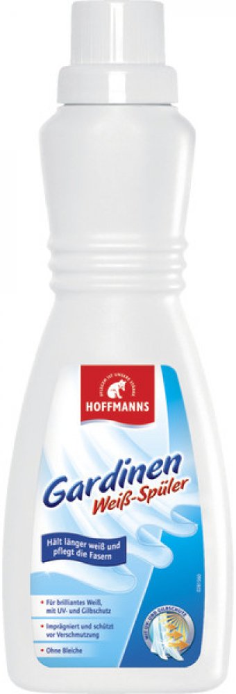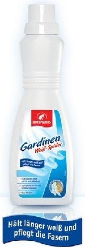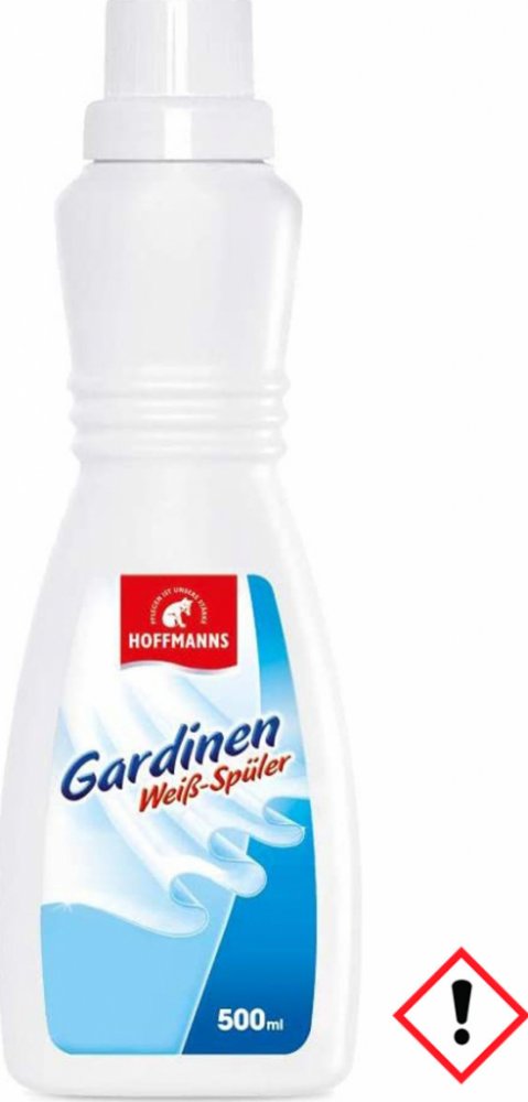 Německý Hoffmann přípravek na bělení záclon Gardinen vyživuje a impregnuje citlivá vlákna záclon s ochranou proti UV záření a žloutnutí. Pro dlouhotrvající bílou s ochranou proti nečistotám. Pro zářivé a krásné bílé záclony po dlouhou dobu. Dermatologicky testováno. Německá kvalita.POUŽITÍ:Před každým použitím lahvičku protřepejte. Pro každý prací cyklus přidejte přibližně 2,75 dávkovacích uzávěrů (165 ml) do přihrádky na aviváž vaší pračky až do maximálního limitu „MAX“ dávkovací přihrádky. Záclony odstřeďte pouze lehce nebo zvolte speciální program na záclony. Pověsit kapající mokré. Zakryjte citlivé podlahové plochy. Pro ruční praní zřeďte cca 2,75 dávkovacího uzávěru (165 ml) bělící aviváže s 10 l studené vody. Dobře vypranou záclonu vložte na 5 minut do máchací lázně, jemně přitlačte a zavěste. Zakryjte citlivé podlahové plochy.SLOŽENÍ:Viz inhaltsstoffe na zadní straně obalu.DOVOZ:NĚMECKO.UPOZORNĚNÍ:NEBEZPEČÍ. Může vyvolat alergické kožní reakce. Uchovávejte mimo dosah dětí. Používejte ochranné rukavice/ochranný oděv/ochranné brýle/obličejový štít. PŘI POŽITÍ: Necítíte-li se dobře, volejte TOXIKOLOGICKÉ INFORMAČNÍ STŘEDISKO/lékaře. PŘI STYKU S KŮŽÍ: Omyjte velkým množstvím vody a mýdla. PŘI ZASAŽENÍ OČÍ: Několik minut opatrně vyplachujte vodou. Pokud je to možné, vyjměte kontaktní čočky. Pokračujte ve vyplachování. Pokud podráždění očí přetrvává: Vyhledejte lékařskou pomoc/ošetření.ŽIVOTNÍ PROSTŘEDÍ:Zcela prázdný a čistý obal je možné recyklovat. Chraňte životní prostředí recyklací. Má to smysl.