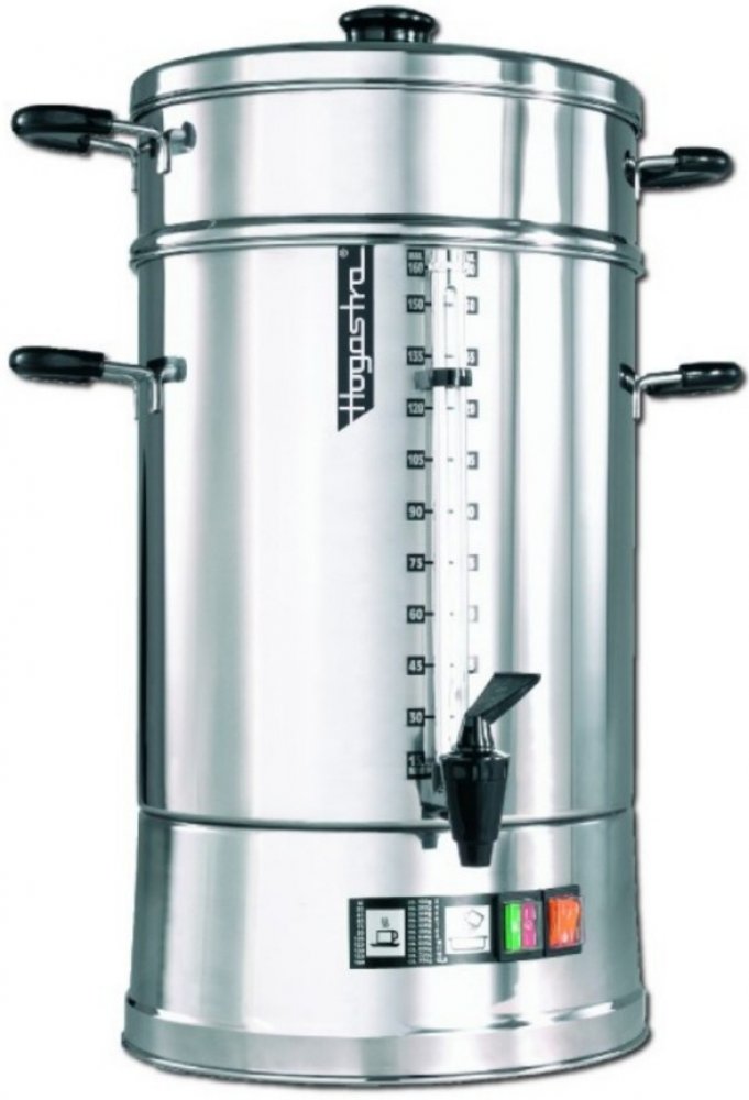 Hogastra Automat na kávu 16,5 lVýrobník kávy je perfektní volbou do rušných provozů, kde potřebujete rychle připravit velké množství kávy a udržet ji stále teplou. Automat funguje na principu překapávání: Do nerezového sítka nasypete mletou kávu a spustíte režim překapávání. Po dokončení sítko vyjmete a výrobník udrží připravený nápoj teplý.