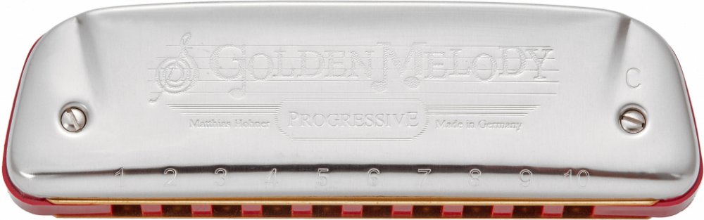 Foukací harmonika Řada Hohner Progressive představuje diatonické harmoniky v Richter a Country ladění, které jsou vyráběny v Německu. Jejich kvalita zpracování (vzduchotěsnost), herní vlastnosti a silný zvuk vám umožní rozvíjet vaše schopnosti a přecházet mezi hudebními styly - od expresivních žánrů blues/rock s technikou ohýbání tónu po jazz, country či pop. Konkrétně model Golden Melody se vyjímá retro designem padesátých let minulého století a rovnoměrně temperovaným laděním, tj. ladí přesně ve všech intervalech. Je tak ideální k melodickému hraní jednotlivých not a těší se oblibě mezi jazzovými muzikanty (Howard Levy, Carlos Del Junco). Navíc si stejně dobře poradí i s akordovými doprovody a technikami ohýbání či přefukování, takže boogie, blues, rock či kterýkoliv jiný hudební styl nepředstavuje problém. Disponuje červeným korpusem z odolného kompozitního materiálu ABS, kryty z nerezové oceli, dvaceti mosaznými hlásky, mosaznými plátky o tloušťce 0,9 mm a rozsahem tří oktáv. S harmonikou navíc získáte přístup k online 30denní lekci hry na foukací harmoniku přímo od firmy Hohner. Lekce je v anglickém jazyce.