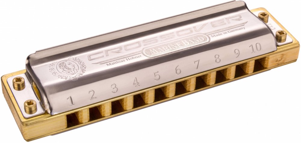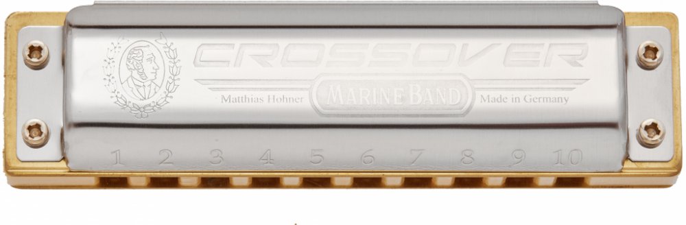 Model Marine band Crossover je moderně pojatá foukací harmonika vycházející vstříc požadavkům současných profesionálních hráčů blues a všech příbuzných nebo navazujících stylů (jazz, rock, soul, funk). Nástroj je ideální k hraní melodií po jednotlivých tónech i k akordovým doprovodům – ať už akusticky, nebo s mikrofonním ozvučením. Jeho patentovaný, třikrát lakovaný, korpus z laminovaného bambusu je zcela voděvzdorný a vzduchotěsný, což zaručuje jeho stálost a opravdu jasný, znělý, tón. Harmonika dále disponuje zpevněnými kryty z nerezové oceli s bočními otvory a otevřenou zadní stranou, zaoblenými hranami pro větší herní pohodlí, dvaceti mosaznými hlásky, mosaznými plátky o tloušťce 0,9 mm a rozsahem tří oktáv. Součástí je též neoprenový obal se zipem, který chrání harmoniku před prachem a umožňuje odvádět vlhkost.