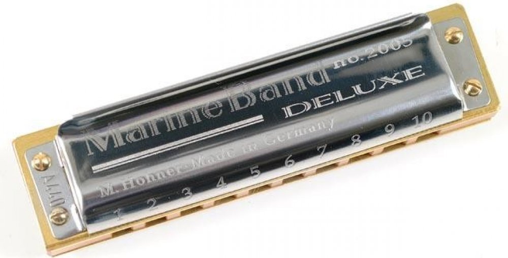 Foukací harmonika Diatonické foukací harmoniky Marine Band jsou pomyslnou vlajkovou lodí značky Hohner. První model byl uveden na americký trh již v roce 1896 a je jen málokdo z legend country, blues či rock n rollu, kdo by ji ve své době nepoužil (Little Walter, Paul Butterfield, Bob Dylan…). Řada s tímto názvem představuje kvalitní, v Německu vyráběné, harmoniky, které do dnešních dní představují jasnou první volbu mnoha profesionálních muzikantů – ať už jde o klasické modely (1896) či moderněji pojaté (Crossover). Zvuk harmoniky Marine Band je pevně spojen se zvukem blues od jeho amerických prvopočátků až do dnešních dní. Dokáže s intenzitou expresivně vystihnout niterné lidské pocity, neodmyslitelně spojené s tímto hudebním i životním stylem. Harmonika Marine Band Deluxe si přenáší tuto schopnost a zároveň otevírá dveře do 21. století vstříc potřebám současných muzikantů. Designové změny zaručují ještě větší hlasitost a rychlejší odezvu harmoniky. Její korpus je zhotoven z trojitě lakovaného dřeva hrušně, tj. je tak chráněné proti absorpci vlhkosti a rozpínání. Harmonika dále disponuje zpevněnými kryty z nerezové oceli s bočními otvory a otevřenou zadní stranou, zaoblenými hranami pro větší herní pohodlí, dvaceti mosaznými hlásky, mosaznými plátky o tloušťce 0,9 mm a rozsahem tří oktáv. Součástí je též neoprenový obal se zipem, který chrání harmoniku před prachem a umožňuje odvádět vlhkost. Všechny modely Marine Band Deluxe používají Richter ladění. S harmonikou navíc získáte přístup k online 30denní lekci hry na foukací harmoniku přímo od firmy Hohner. Lekce je v anglickém jazyce.