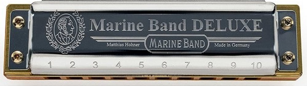 Foukací harmonika Diatonické foukací harmoniky Marine Band jsou pomyslnou vlajkovou lodí značky Hohner. První model byl uveden na americký trh již v roce 1896 a je jen málokdo z legend country, blues či rock n rollu, kdo by ji ve své době nepoužil (Little Walter, Paul Butterfield, Bob Dylan…). Řada s tímto názvem představuje kvalitní, v Německu vyráběné, harmoniky, které do dnešních dní představují jasnou první volbu mnoha profesionálních muzikantů – ať už jde o klasické modely (1896) či moderněji pojaté (Crossover). Zvuk harmoniky Marine Band je pevně spojen se zvukem blues od jeho amerických prvopočátků až do dnešních dní. Dokáže s intenzitou expresivně vystihnout niterné lidské pocity, neodmyslitelně spojené s tímto hudebním i životním stylem. Harmonika Marine Band Deluxe si přenáší tuto schopnost a zároveň otevírá dveře do 21. století vstříc potřebám současných muzikantů. Designové změny zaručují ještě větší hlasitost a rychlejší odezvu harmoniky. Její korpus je zhotoven z trojitě lakovaného dřeva hrušně, tj. je tak chráněné proti absorpci vlhkosti a rozpínání. Harmonika dále disponuje zpevněnými kryty z nerezové oceli s bočními otvory a otevřenou zadní stranou, zaoblenými hranami pro větší herní pohodlí, dvaceti mosaznými hlásky, mosaznými plátky o tloušťce 0,9 mm a rozsahem tří oktáv. Součástí je též neoprenový obal se zipem, který chrání harmoniku před prachem a umožňuje odvádět vlhkost. Všechny modely Marine Band Deluxe používají Richter ladění. S harmonikou navíc získáte přístup k online 30denní lekci hry na foukací harmoniku přímo od firmy Hohner. Lekce je v anglickém jazyce.