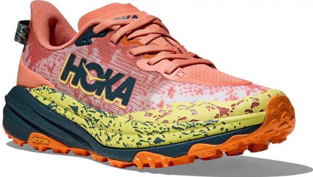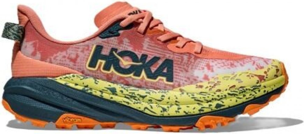 Hoka Speedgoat 6 je ikonická trailová běžecká obuv, která si hravě poradí s náročným terénem. Tato verze kombinuje osvědčené tlumení Hoka s agresivní trakcí a ultralehkými materiály, aby poskytla maximální výkon na každém kroku. Boty nabízí prodyšný tkaný svršek, vnitřní opěrnou strukturu pro lepší fixaci chodidla a vylepšený vzorek podrážky inspirovaný kozími kopyty pro lepší stabilitu na nerovném povrchu. Dokonalá trakce – Vibram® Megagrip podrážka s inovovaným uspořádáním výstupků pro lepší přilnavost Lehká a prodyšná konstrukce – tkaný svršek zajišťuje skvělou ventilaci při dlouhých bězích Přesné usazení nohy – vnitřní opěrná struktura a anatomicky tvarovaný jazyk zajišťují stabilitu a pohodlí Ochrana v náročném terénu – zesílená špička chrání chodidlo před nárazy Dynamická a citlivá pěna – lehčí a pružnější tlumení pro plynulejší běh Vegan-friendly: Bez živočišných složek Mezipodešev: Lehčí a citlivější pěna pro vyšší dynamiku běhu