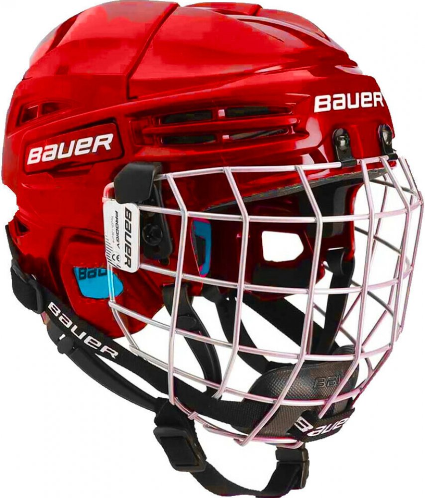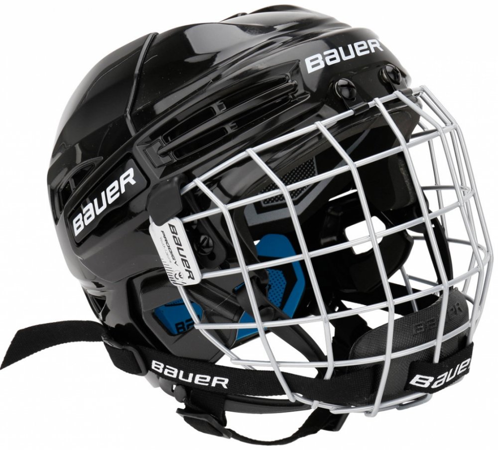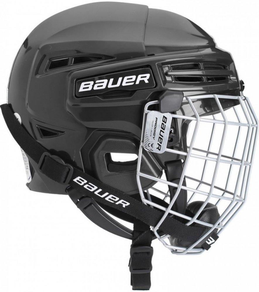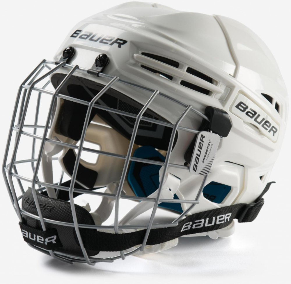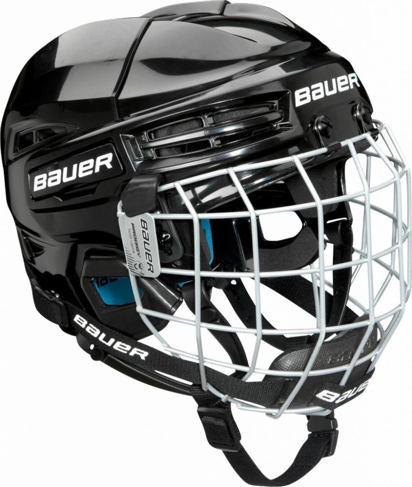 Nová dětská helma Bauer Prodigy s košíkem. Ideální helma pro začínající hokejisty s jednoduchým systémem nastavení velikosti a s inovovaným systémem upínání.