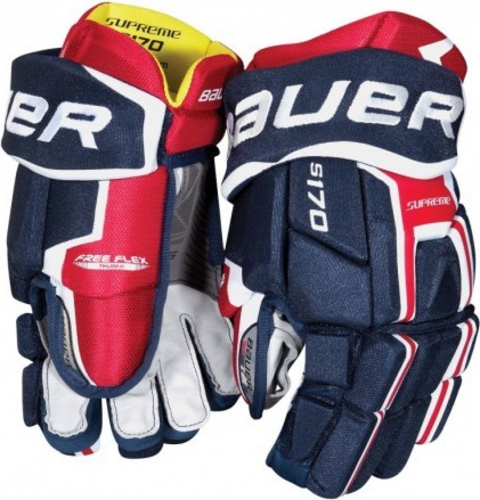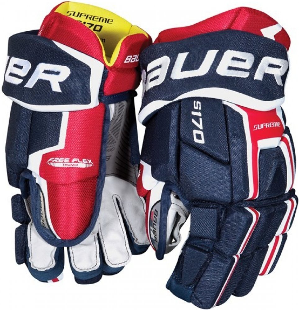 Rukavice Bauer Supreme S170 nabízí službu poloprofesionálním hokejovým hráčům. Provedení dvojdílného palce se postará o luxusní obratnost a zlepší schopnost pohybu. Systém dvojitých prstů zajišťuje bezchybnou ovladatelnost. Riziko vykloubení palce se limitně blíží nule. Zápěstí a dlaň vyniká skvělým citem během práce s hokejkou.
