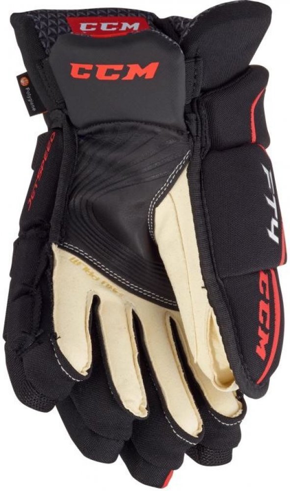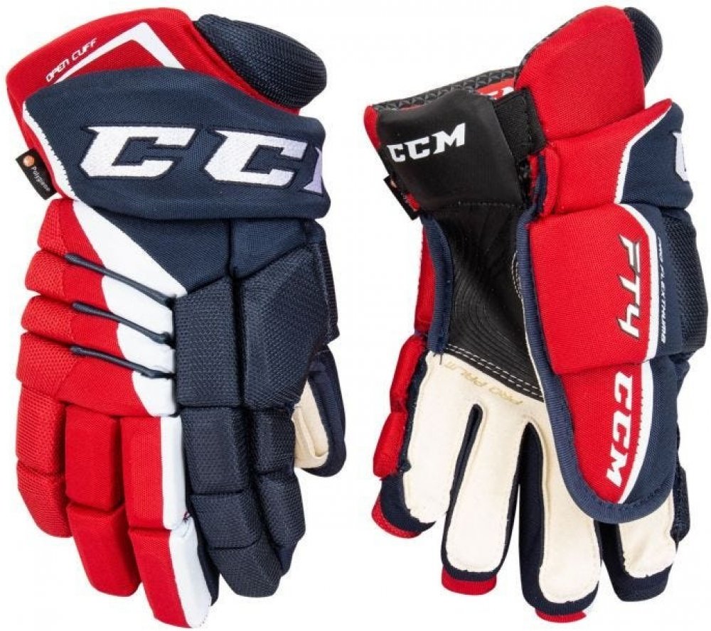 Špičkové komfortní rukavice CCM z nejnovější řady JETSPEED. Rukavice CCM JETSPEED FT4 jsou druhý nejvyšší model řady JETSPEED. Rukavice ze špičkového materiálu na úrovni profi TOP modelu, s extra zesílenou dlaní. Zajišťují skvělou úroveň ochrany díky ochranné PE pěně s vloženými plastovými díly a zároveň dovolují hráči skvělou pohyblivost v zápěstí. V neposlední řadě mají velmi atraktivní design.