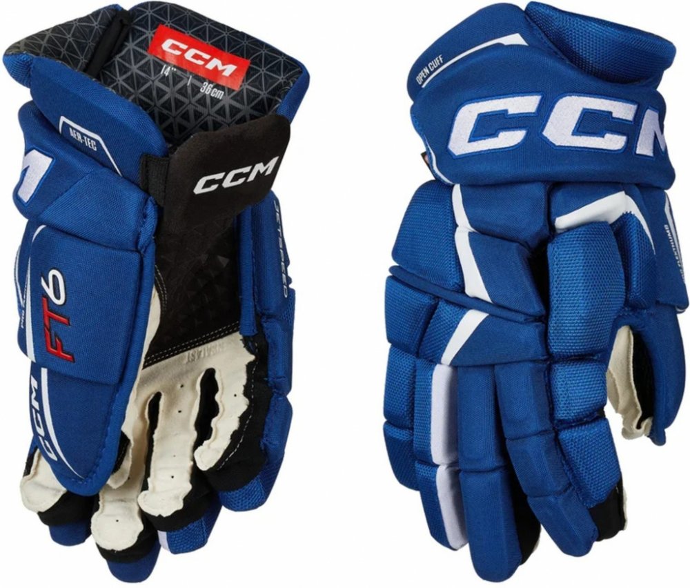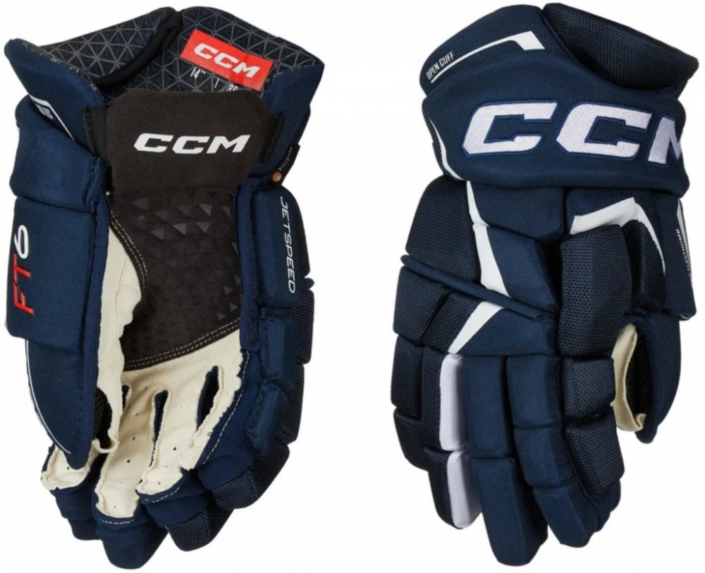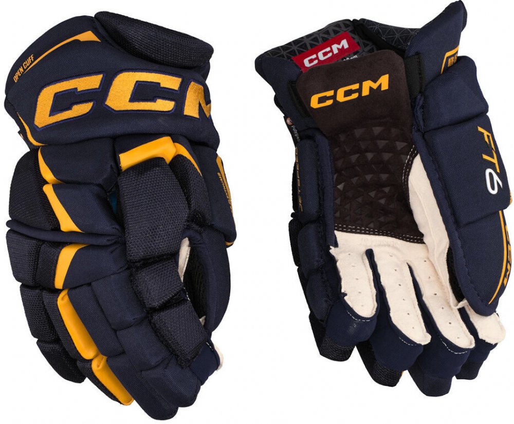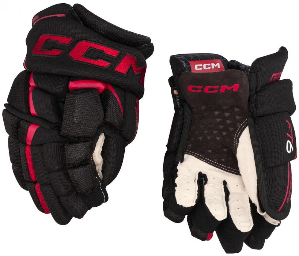 Špičkové komfortní rukavice CCM z nejnovější řady JETSPEED. Rukavice CCM JETSPEED FT6 jsou druhý nejvyšší model řady JETSPEED. Rukavice ze špičkového materiálu na úrovni profi TOP modelu, s extra zesílenou dlaní. Zajišťují skvělou úroveň ochrany díky ochranné PE pěně s vloženými plastovými díly a zároveň dovolují hráči skvělou pohyblivost v zápěstí. V neposlední řadě mají velmi atraktivní design.