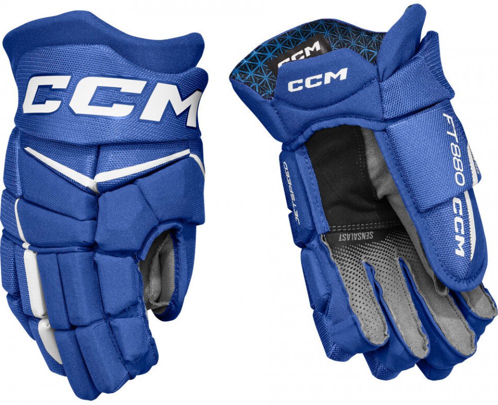 Rukavice CCM JetSpeed FT880 Black/White mají zkosený střih. Hokejové rukavice s takovým střihem mají širší střih v oblasti prstů a nabízejí více prostoru pro ovládání hokejky. V oblasti zápěstí se ale zužují, čímž kladou více důrazu na rychlost a výkon.