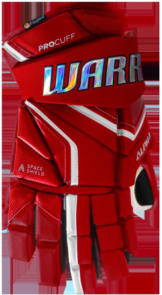 Hokejové rukavice - Senior • Profesionální - Amatér • Stupeň ochrany: vysoká • Střih: anatomický • Barva: červená • Provedení prstů: 3-dílně členěný ukazováček a prostředníček • Provedení palce: AxyFlex Thumb • Materiál dlaně: Pro Palm X