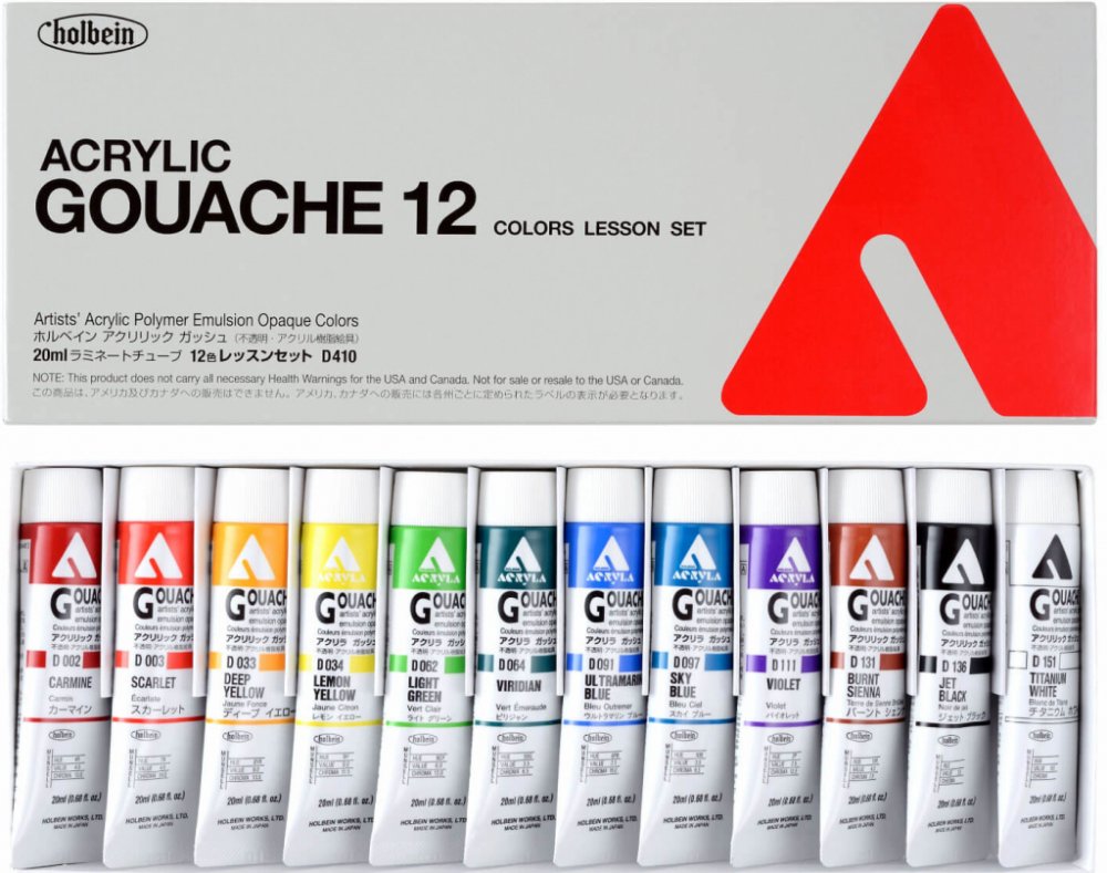 Holbein Akrylové kvašové barvy sada 12 ks