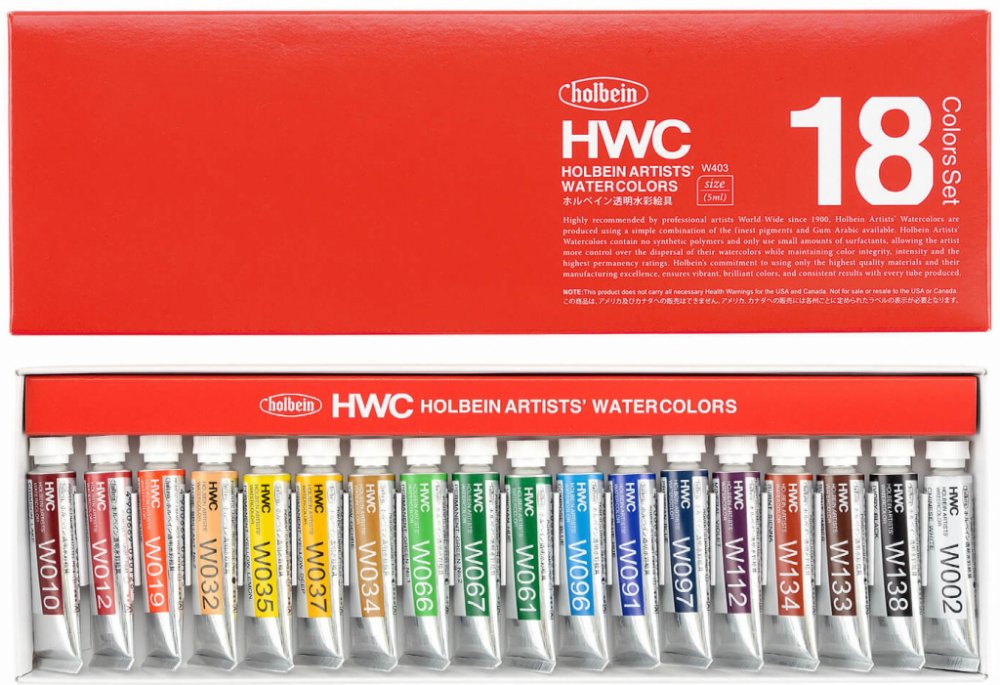 Akvarelové barvy Holbein jsou dovážené z Japonska, země s nejstarší profesionální akvarelovou tradicí. Pro své vlastnosti a kvalitu se řadí k nejlepším světovým výrobcům akvarelových barev. Barvy jsou vytvořeny z jemně mletého pigmentu a neobsahují volskou žluč ani žádné jiné živočišné produkty a dispergační činidla. Díky tomu získáte při malování plnou kontrolu nad rozptylem pigmentu, vysokou intenzitu a čistotu barvy. Před použitím barvu naneste na paletku a rozmíchejte s kapkou vody do požadovaného tónu a množství. Pro nanášení barvy použijte klasický štětec nebo vodní štětec. barvy na vodní bázi snadné tónování a mísení profesionální kvalita vysoce pigmentované bez živočišných produktů balení 18 ks Barvy v balení: W010 - Crimson Lake, W012 - Rose Madder, W019 - Vermilion Hue, W032 - Jaune Brillant 2, W035 - Permanenr Yellow Lemon, W037 - Permanent Yellow Deep, W034 - Yellow Ochre, W066 - Permanent Green 1, W067 - Permanent Green 2, W061 - Viridian Hue, W096 - Compose Blue, W091 - Cobalt Blue Hue, W097 - Prussian Blue, W112 - Mineral Violet, W134 - Burnt Sienna, W133 - Burnt Umber, W138 - Ivory Black, W002 - Chinese White YUPPI slovník Začínáte s kreativním tvořením a nerozumíte některým pojmům? Nevadí, připravili jsme pro vás YUPPI slovníček pojmů. malba akvarelem papír na akvarel vodní štětec bavlněný papír akvarelové fixy maskovací kapalina Celý slovník Co je to akvarel? Akvarel je jedna z nejmladších technik malby, při které se používají vodou ředitelné akvarelové barvy vyrobené ze směsi pigmentů, arabské guby, glycerinu a (nebo) medu). Výsledná malba je poloprůsvitná a nechává vyniknout struktuře akvarelového papíru. V poslední době se akvarelová malba těší velké oblibě. Rád bych začal/a s akvarelem. Poradíte mi, co vše si mám pořídit do začátku? Pokud s akvarelem začínáte, budete potřebovat akvarelové barvy, štětec a akvarelový papír. Všechny potřebné pomůcky blíže popisujeme v našem článku Základní pomůcky pro malování akvarelem. Co znamená, když je produkt momentálně nedostupný? Pokud je u zboží napsáno "momentálně nedostupné", tak není skladem. Doobjednáme ho, jakmile to bude možné. Pokud vás zajímá, kdy přesně by mohlo být naskladněné, tak nás kontaktujte. Je možné zboží vyměnit za jiný produkt? Samozřejmě,zboží vám rádi vyměníme za jiné. Zpět k výměně nám ho můžete odeslat do 14 dnů. nepoškozené zboží vyměníme za jiné, které si vyberete a máme ho aktuálně skladem. Pokud se rozhodnete pro levnější variantu, uveďte, prosím, číslo vašeho účtu, na které vám zašleme přeplatek. V opačném případě se domluvíme na způsobu úhrady nedoplatku.Podrobné informace a postup výměny naleznete zde. Máte prodejnu nebo místo, kde je možné zboží osobně prohlédnout? Bohužel v současné době kamennou prodejnu neprovozujeme. Rádi vám zboží pošleme až domů nebo na jakékoliv z 2000+ výdejních míst po celé České republice. Pokud máte dotaz ke konkrétnímu produktu, kontaktujte nás prosím. zobrazit nejčastější dotazy