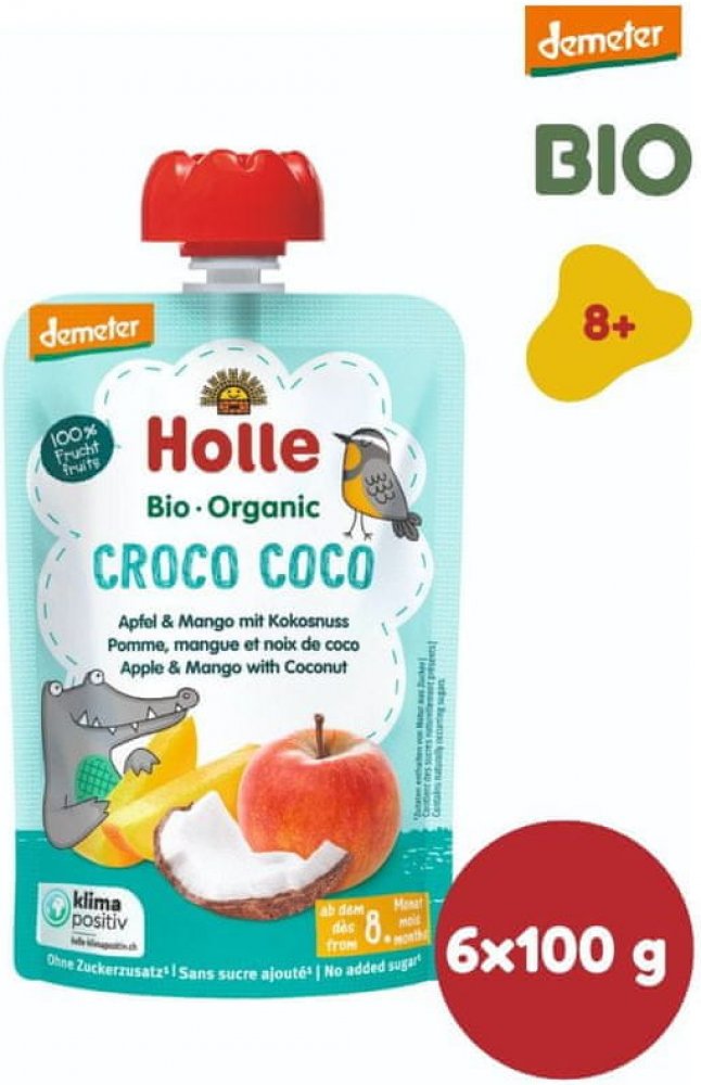 Holle Bio ovocné pyré jablko – mango – kokos je pokračovací kojenecká výživa, vhodná od 8. měsíce věku dítěte. Připraveno z BIO zemědělství.