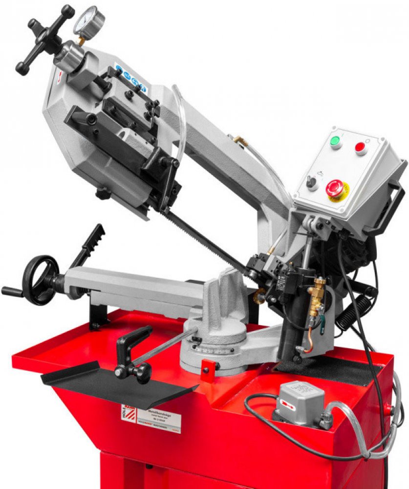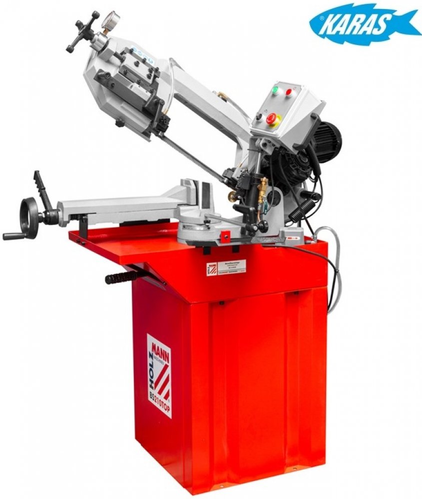 Pásová pila na kov BS210TOP od výrobce Holzmann je vysoce přesná kovová pásová pila s robustním nastavením litiny. Výkonný dvoustupňový převodový pohon. Pilový rám se otáčí až na 60°, což umožňuje pokosové řezy. Pětibodové uložení pásu na kuličkových ložiscích s rychlonastavením, automatickým vypnutím zajišťuje maximální přesnost řezu.