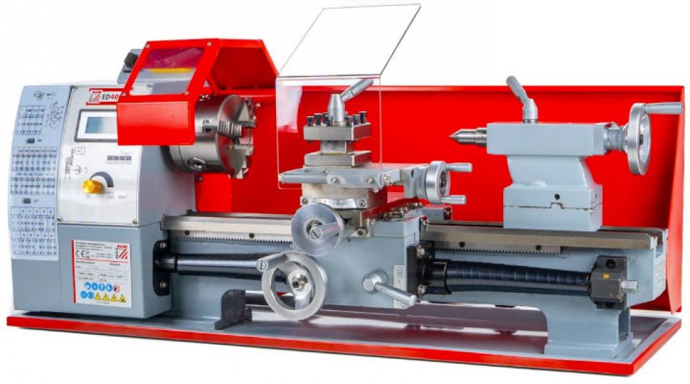 - S vodícím šroubem pro řezání závitů nebo k automatickému podélnému soustružení.- Indukčně tvrzené a precizně broušené prizmatické vedení.- Tvrzený vodící šroub, uložený v kuželových seřizovatelných ložiscích.- Vysoká přesnost a kruhovitost hlavního vřetene (0,009 mm).- Plynulá regulace rychlosti otáčení, snadno čitelná na číslicovém ukazateli.- Seriově dodávaná převodovková kola pro velký rozsah...
