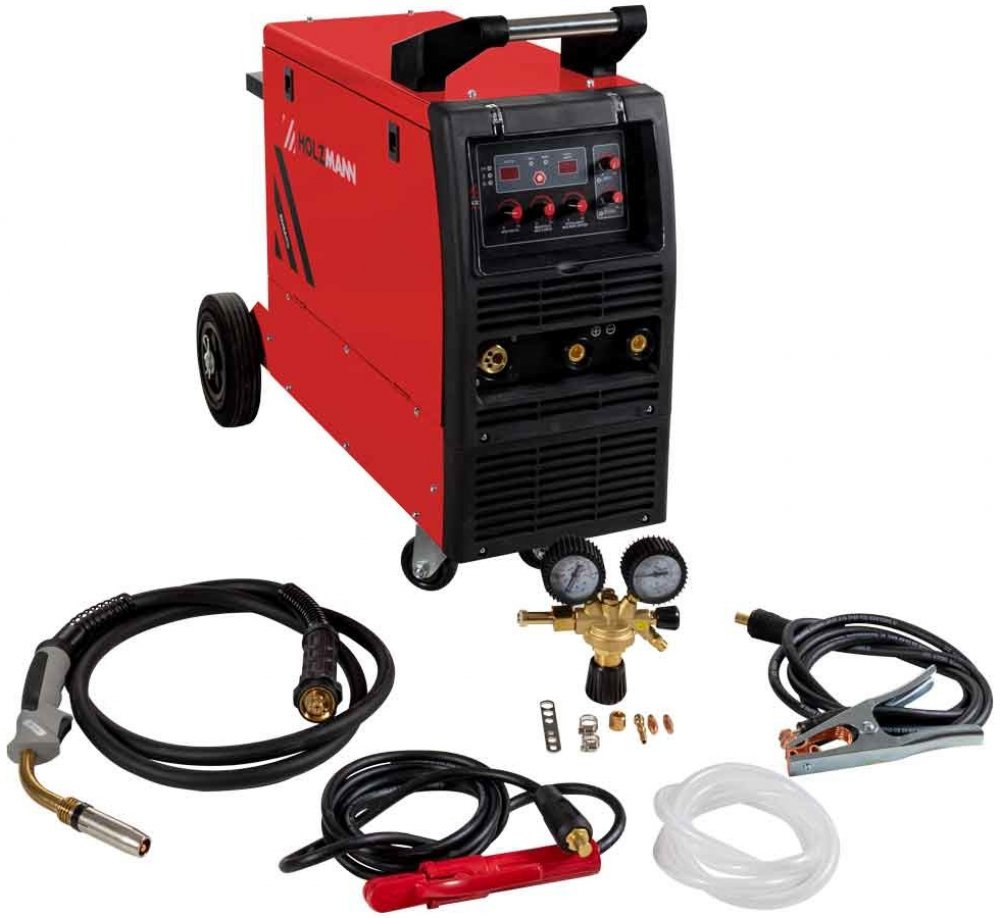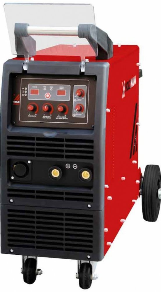 Pojízdný mechanismus včetně prostoru pro uložení tlakové láhve Svařování MMA (elektrodou): 10 - 200 A Svařování MIG (ochranný plyn): 30 - 315 A Ø0,6 | 0,8 | 1,0 | 1,2 mm tloušťka svařovacího drátu 1,5 - 13 m/min rychlost posuvu drátu Frekvence bodového svařování: 0,5 15 s Obsah dodávky: zemnicí kabel (3 m), plynová hadice (2 m), redukce tlaku, svařovací hořák MIG, držák elektrod