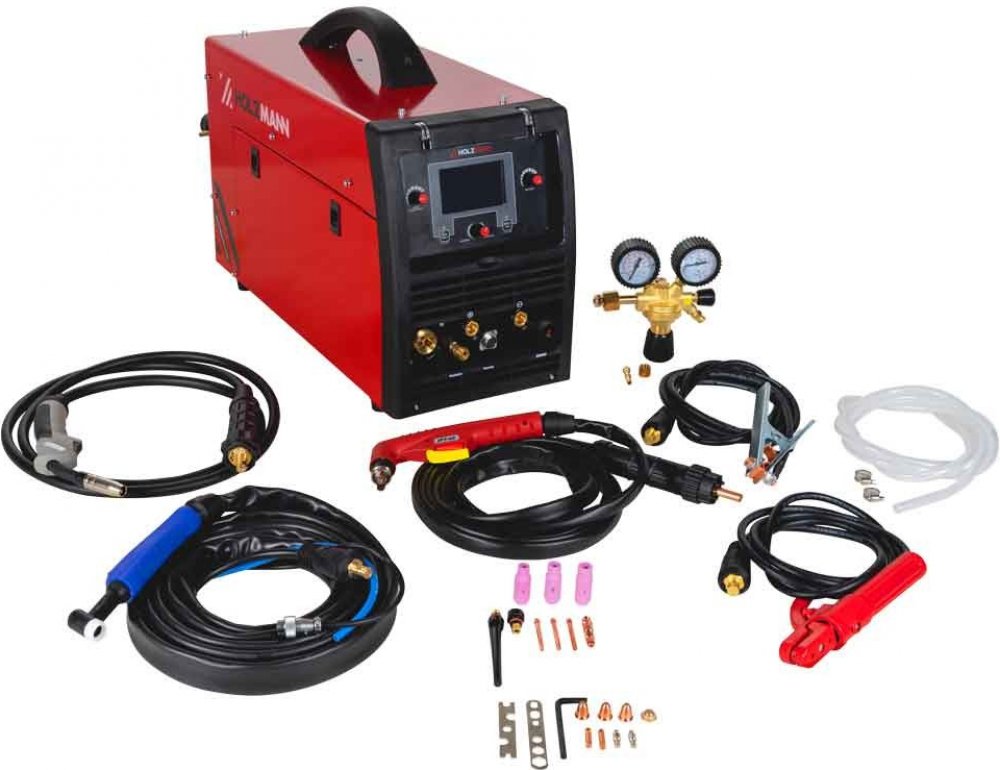 Doba před průtokem plynu: 0-10 s Doba po průtoku plynu: 0 - 10 s Frekvence bodového svařování: 0,5 - 15 s Doba bodového svařování: 0 - 15 s Svařování MMA (elektrodou) Rozsah svařovacího proudu 10 - 160 A Doba horkého startu: 0 - 2 s Svařování MIG (v ochranném plynu) Rozsah svařovacího proudu 30 - 200 A Tloušťka svařovacího drátu: Ø 0,6 | 0,8 | 0,9 | 1,1 mm Rychlost posuvu drátu: 1,5 - 15 m/min Doba spouštění proudu: 0 - 1 s Doba nárůstu proudu: 0 - 1 s Svařování metodou WIG/TIG Rozsah svařovacího proudu: 10 - 200 A DC Rozsah svařovacího proudu: 20 - 200 A AC Impulsní frekvence DC: 0,5 - 150 Hz Frekvence střídavého impulsu se čtvercovou vlnou tvrdá: 0,5 - 150 Hz Impulsní frekvence střídavého proudu se čtvercovou vlnou měkká: 0,5 - 10 Hz Pulsní frekvence střídavého proudu trojúhelník: 0,5 -10 Hz Pulsní frekvence střídavé sinusovky: 0,5 - 10 Hz Základní pulzní poměr: 5-95 % Základní pólový proud: 3 - 95 Zapalování oblouku WIG/TIG: HF/Lift Svařování WIG/TIG-PULS (tvrdé:): špičkový proud: 20 - 125 A Plazmové řezání Rozsah řezného proudu: 20 A - 40 A max. tloušťka řezu 12 mm Provozní tlak vzduchu: 2,5 - 5 barů (0,25 - 0,5 MPa) Průtok vzduchu 60 - 100 l/min Obsah dodávky: řezací hořák, svařovací hořák WIG/TIG, svařovací hořák MIG, držák elektrod, čepička hořáku (krátká/dlouhá), distanční podložka, plynové trysky, pouzdro upínacího nátrubku a upínací objímky, plynová hadice, zemnicí kabel, redukční ventil