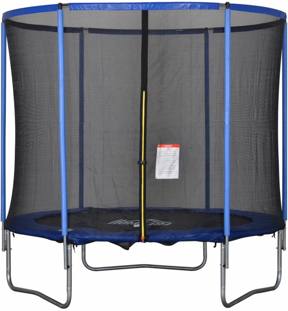 Pokud hledáte šetrný způsob, jak si skvěle zacvičit aerobik, trampolína HOMCOM s ochrannou sítí je pro vás ideálním řešením. Díky své robustní ocelové konstrukci a široké skákací plošině je navržena tak, aby zabránila pádům a zraněním. Má ideální velikost, která vám poskytne hodiny bezpečné skákací zábavy. Skvělá první trampolína pro vás i vaše dítě!Popis: Trampolína je určena pro děti od 3 let a je vybavena speciálními funkcemi, které jsou součástí balení:✔ Odolný ocelový rám a kvalitní pružiny✔ Unikátně navržená ohradní síť poskytuje více prostoru pro skákání✔ Vhodná pro vnitřní i venkovní použití✔ Plná ohradová síť a pěna pro bezpečnost✔ Dveře na zip s bezpečnostním zámkem zajišťují bezpečnost a usnadňují nastupování a vystupování✔ Ideální pro dospělé i děti, skvělý doplněk do velké domácí i venkovní tělocvičny✔ Pro budování svalové hmoty a posilování svalů ramen, boků a nohou Technické údaje: Vhodné pro cvičení v tělocvičně, pro posilování, pro posilování a pro posilování:✔ Barva: modrá + černá✔ Materiál: ocel, plast✔ Celkové rozměry: Ø244 x 240V cm✔ Plošina k zemi: 60 cm✔ Velikost skákací podložky: Ø205 cm✔ Velikost bezpečnostní sítě: Ø205 x 180V cm✔ Nosnost: 113,6 kg✔ Nutná montážRozsah dodávky:✔ 1 x trampolína✔ 1 x návod k použitíSTABILNÍ KONSTRUKCE: Trampolína se skládá z robustního ocelového rámu a odolné skákací podložky, která unese až 110 kg, takže je robustní a spolehlivá při používání. Stabilitu při skákání zajišťují 3 nohy ve tvaru písmene U.BEZPEČNOST NA PRVNÍM MÍSTĚ: Dodává se s plastovou skákací podložkou, která je odolná pro dlouhodobé používání. Bezpečnostní síť a EPE pěna zabraňují náhodným zraněním a praktická dvířka na zip usnadňují nastupování a vystupováníVELKÝ PROSTOR: Velká skákací podložka a jedinečná síť poskytují dostatek prostoru pro skákání vám i vašemu dítěti.ZACHOVEJTE SE ZDRAVĚ: Podporujte zdravý životní styl vás i vašeho malého dítěte, které si procvičí svaly, zvýší tepovou frekvenci a zlepší flexibilitu a rovnovážné schopnosti. Tato trampolína je vhodná pro vnitřní i venkovní použití a je ideální pro děti i dospělé.PODROBNOSTI O VÝROBKU: Celkové rozměry: Ø244 x 240V cm, nosnost: 113,6 kg. Nutná montáž.