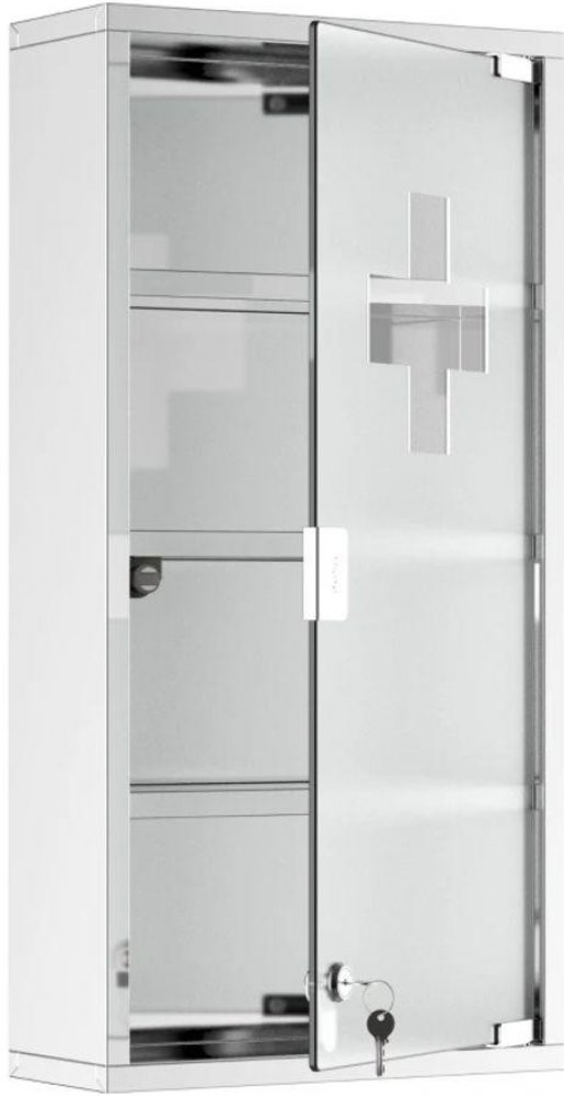 Je vyrobena z vysoce kvalitní nerezové oceli, a proto je nerezavějící a odolná. Dvířka z matného skla lze uzamknout a jsou vybavena automatikou Tip-On. Dveře lze také snadno otevřít jednou rukou. Na přední straně je také dobře vidět kříž první pomoci. Vaše skříň je jím vždy jasně označena. I bez manuální zručnosti lékárničku snadno sestavíte a připevníte na zeď. Aby byly vaše léky a léky bezpečně ...