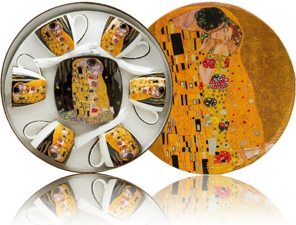 Porcelánový set šesti šálků, podšálků a lžiček z kolekce malíře Gustava Klimta. Rakouský malíř a grafik velmi významně zasáhl do moderního umění, a tak můžete udělat velkou radost jeho obdivovatelům. Porcelánový set je zabalen v dárkové krabičce.