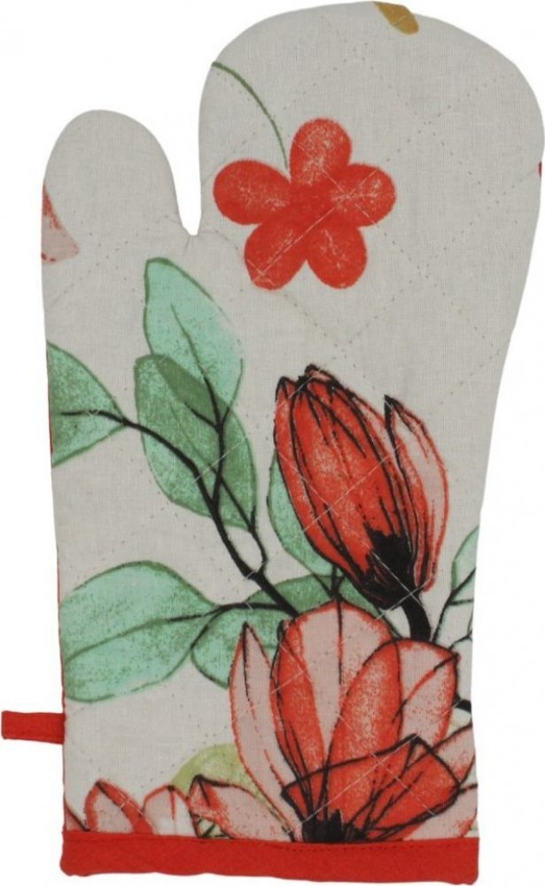 \nKuchyňská chňapka musí být při vaření po ruce. Čas od času je nutné ji vyměnit a pořídit novou. Kuchyňská chňapka s pěkným motivem květin oživí prostor a dozdobí interiér.  \nChňapka má všitý magnet