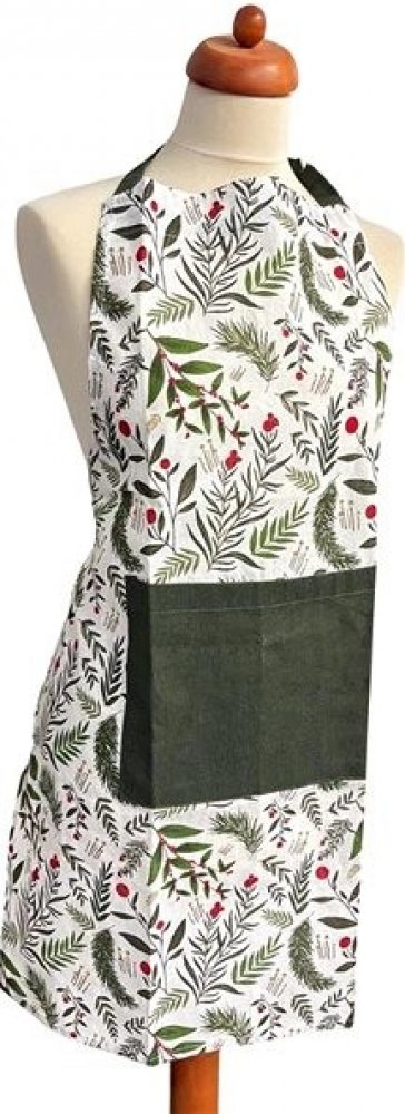 Součást kolekce kuchyňského textilu se stejným dekorativním vánočním vzorem s červeným jmelím, zástěru můžete sladit s chňapkou nebo utěrkami ve stejném provedení.