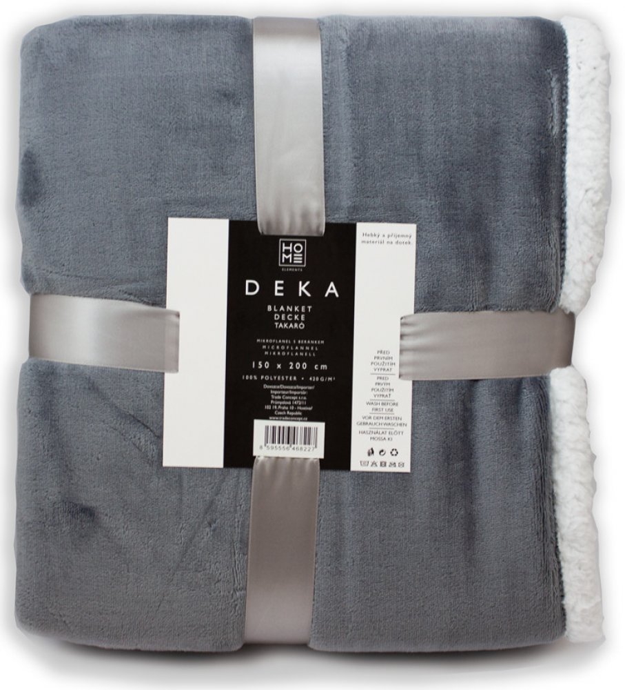 Deka HOME ELEMENTS nabídne nespočet různých využití. Kdykoliv zahřeje a také vám pomůže vytvořit ve vašem domově příjemnou atmosféru. K její výrobě posloužil kvalitní materiál, jakým je mikroflanel. Deku nejvíce oceníte především v chladných zimních měsících. Jejímu vzhledu dominuje šedá barva. Deka měří 150 × 200 cm. Zásadní vlastnosti produktu HOME ELEMENTS Mikroflanelová deka s beránkem 150 × 2...