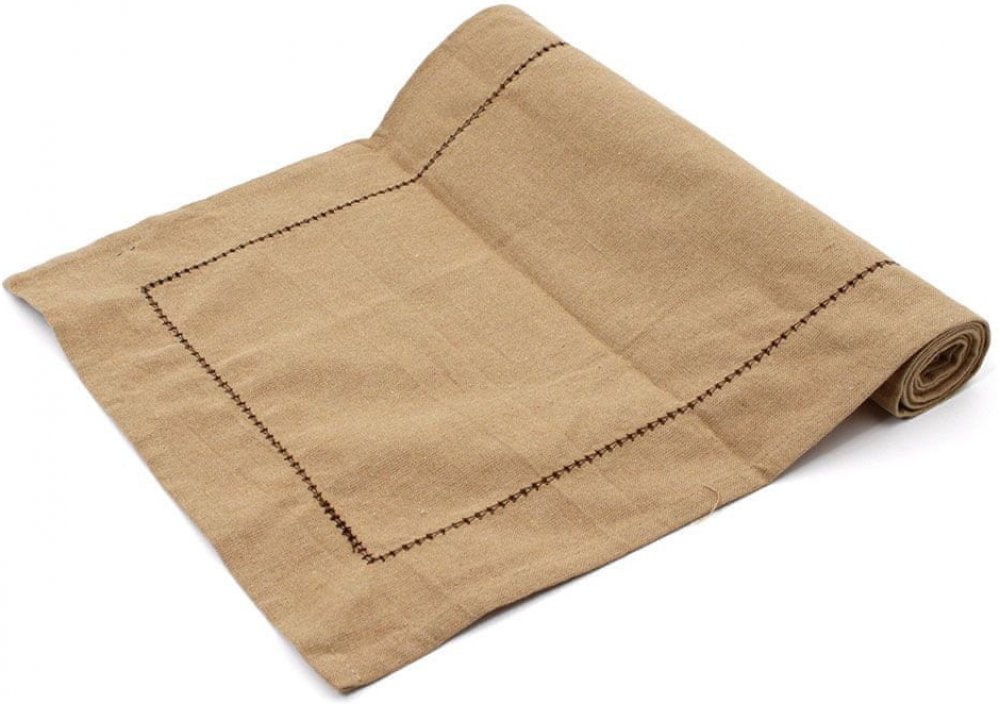 Barva béžová s ozdobným štepováním v kontrastní tmavší barvě po obvodu. Prostírání běhoun doplňuje naši kolekci z recyklovaného materiálu....