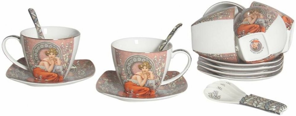 Home Elements Sada 6 kusů šálků s podšálky a lžičkami Mucha tmavý 250 ml