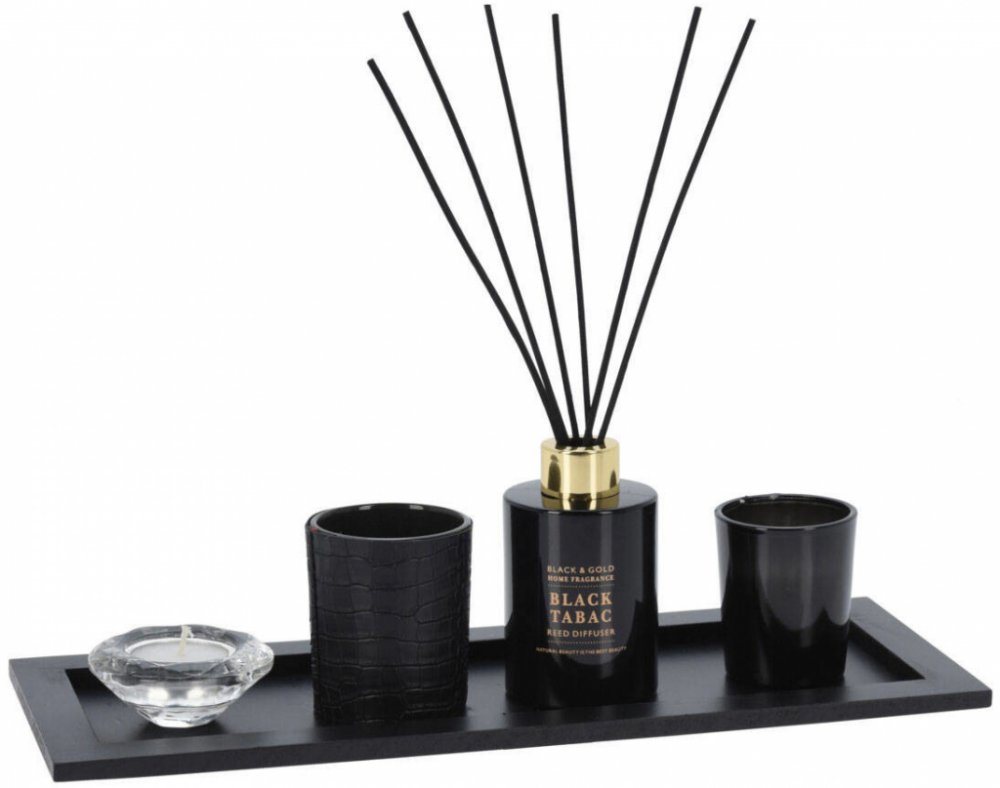 Home Styling Collection Černý aroma difuzér 80 ml s tyčinkami + 2x svíčka