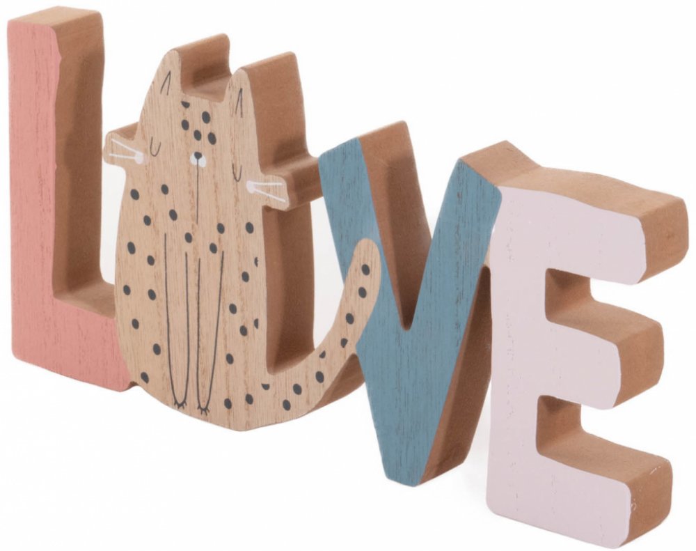 Home Styling Collection dekorace do dětského pokoje Nápis a kočka Love dřevěná 28 x 25 x 12 cm