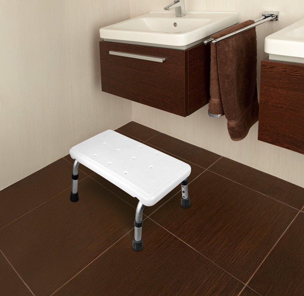 Pomocný schůdek usnadňuje vstupování do vany, mohou je používat děti, aby snáze dosáhly k umyvadlu nebo dospělí s pohybovým omezením pro snadný vstup do vany, sprchové koutu apod. Je vybaveno hygienickou protiskluzovou stoupací plochou se zaoblenými hranami a gumovými koncovkami nohou proti skluzu.