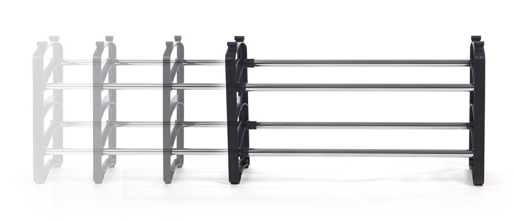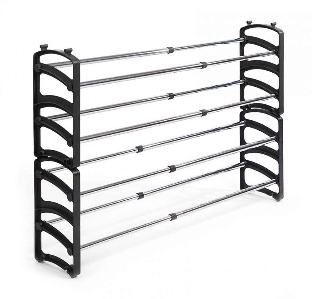 Dvoupatrový stohovatelný botník je ideální nejen pro uložení obuvi. Botníky lze na sebe stohovat a vytvářet tak více úložného prostoru. Botník je vhodný do předsíně nebo chodby, lze ale použít i jako poličky do skříní, vestavných skříní nebo na sestavení samostatně stojícího regálu. Botník má poličky vyrobeny z kovu, bočnice jsou plastové se zámky. Do teleskopického botníku naskládáte až 10 párů bot v závislosti na délce vysunutí.