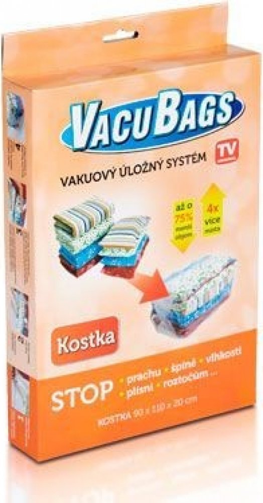 Klíčové vlastnosti produktu Home Life Vacu bag kostka Vakuový pytel Home Life vám usnadní skladování věcí, které zrovna nepoužíváte Zabraňuje navlhnutí, udržuje věci čisté a poskytuje ochranu před plísní, prachem a roztoči Přes odsávací ventil můžete vzduch vysát pomocí vysavače nebo pumpy Materiálem použitým pro jeho výrobu je plast Vakuový úložný pytel Home Life má objem 198 l V balení najdete 1...