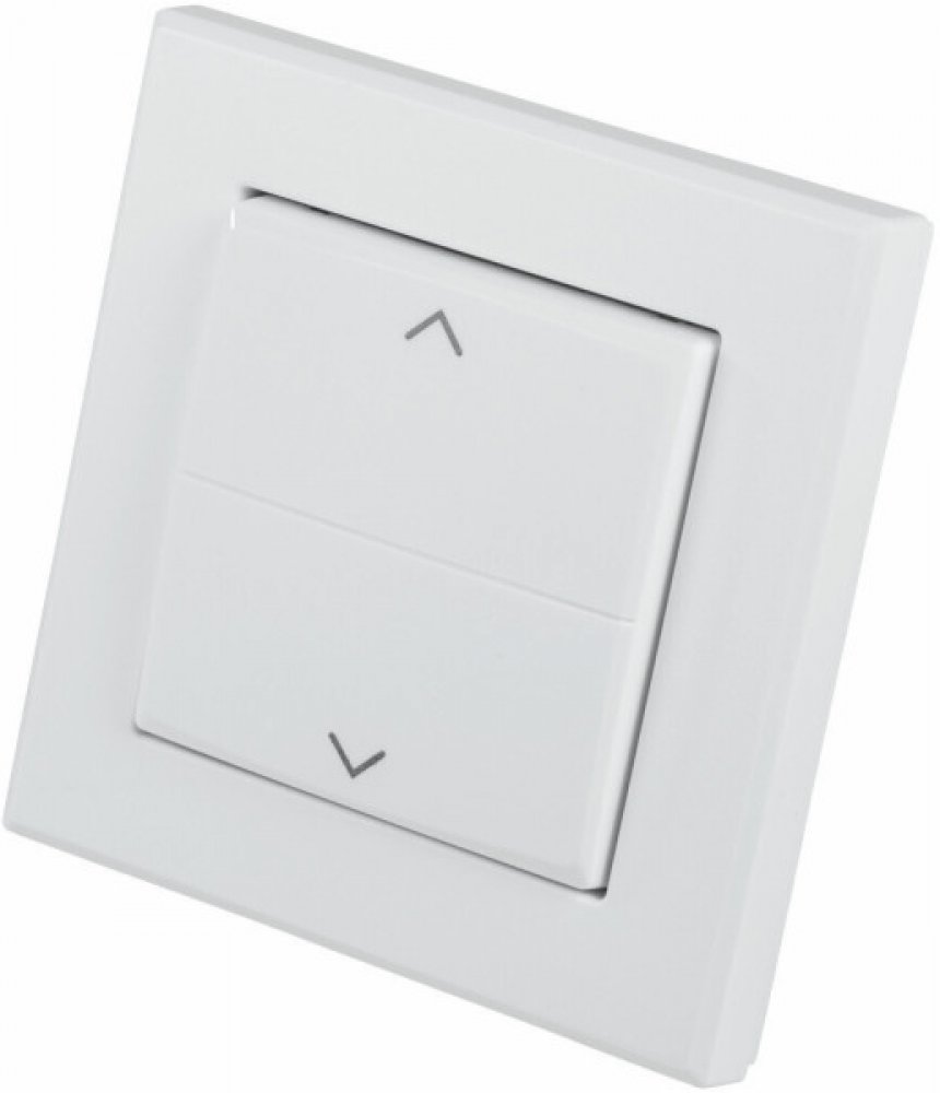 Kryt kolébkového vypínače se symboly šipek a rámečkem (HmIP-BRA) pro programovatelné bezdrátové akční členy (HmIP-BRC2, HmIP-BROLL, HmIP-BBL, HmIP-BSM, HmIP-BDT) o velikosti 55 mm je součástí systému chytré domácnosti Homematic IP.