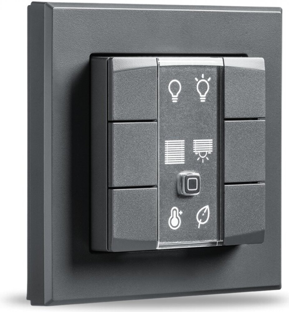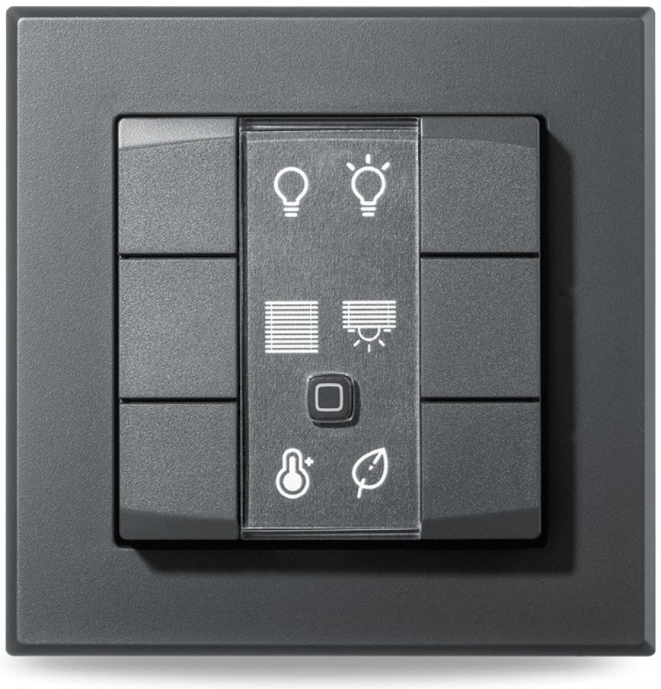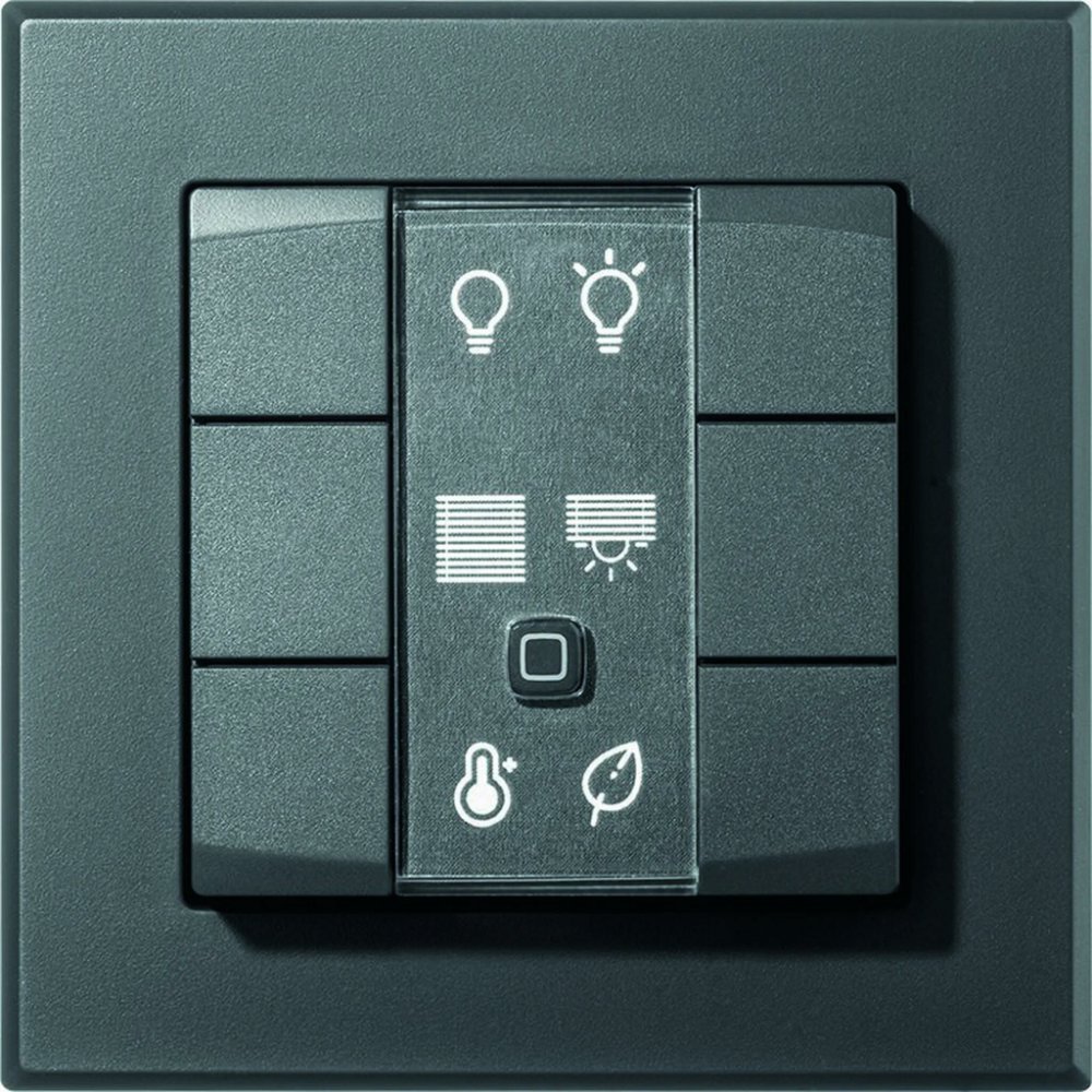 Programovatelný bezdrátový Nástěnný dálkový ovladač v antracitové barvě (HmIP-WRC6-A) je součástí systému chytré domácnosti Homematic IP.