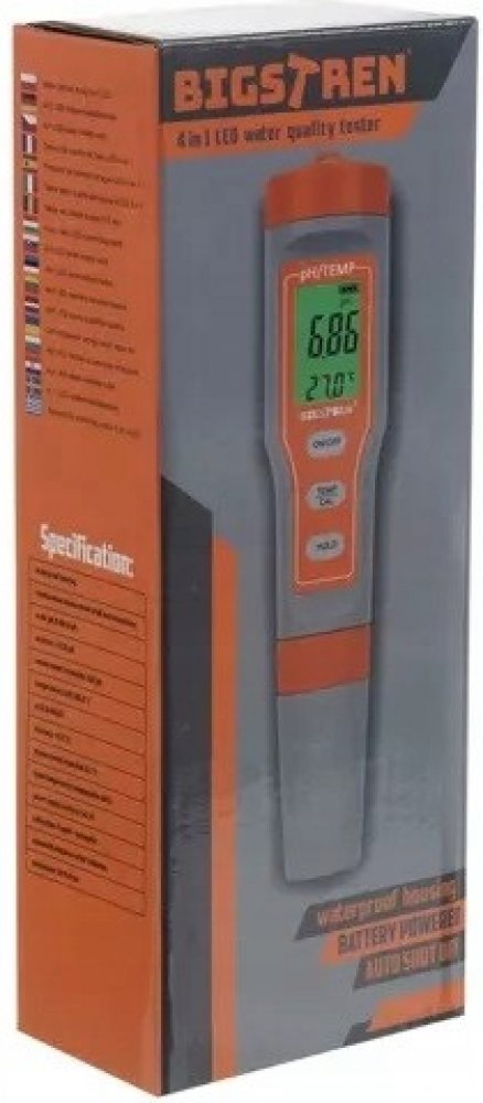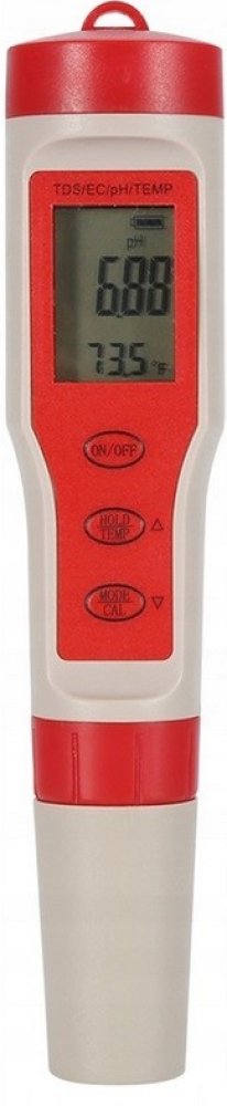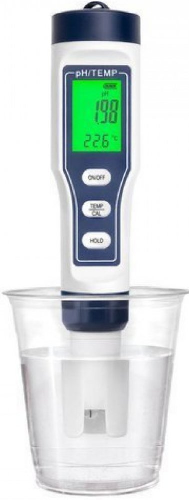 SPECIFIKACE - vodotěsné pouzdro; současné měření pH a teploty; stupnice: pH: 0,00-14 pH; přesnost: ± 0,01 pH; rozlišení měření: 0,01 pH; Teplota: 0,19 C-60,0 °C nebo 32,0-140,0 F; přesnost: ± 0,5 °C; rozlišení měření: 0,1 °C; kompenzace teploty kapaliny (ATC); napájení: baterie: 3x1,5V; kalibrace: 3-bodová - automatická; automatické vypnutí po 5 minutách; rozměry: 18/4/4 cm; hmotnost: 0,091 kg; hmotnost s obalem: 0,296 kg.