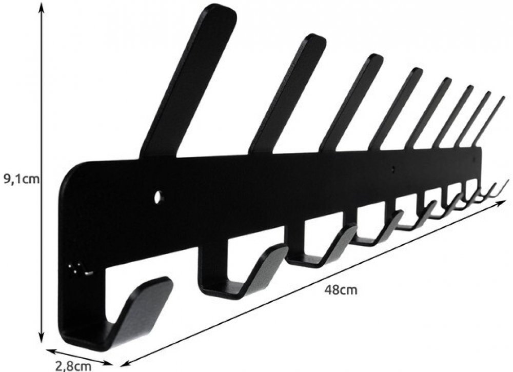ČERNÝ VĚŠÁK NA STĚNU - 17 HÁČKŮ 17 HÁČEK – Věšák je velmi široký a prostorný, má až 17 háčků na zavěšení oblečení. Dole je 9 ramínek a nahoře 8 delších háčků. ŠROUBY PRO MONTÁŽ VČETNĚ – při koupi nástěnného věšáku získáte vše potřebné k instalaci na zeď bez problémů. Sada obsahuje rozšiřovací špunty, díky kterým věšák snadno připevníte na zeď . ODOLNÉ VŮČI ATMOSFÉRICKÝM PODMÍNKÁM - nástěnný věšák ...