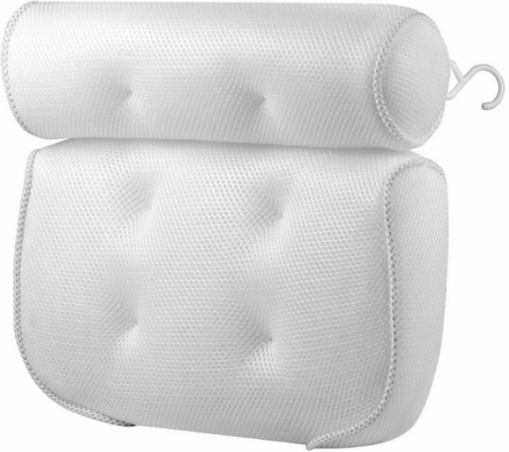 Koupací polštář vyrobený z prodyšného síťovaného materiálu. Poskytuje neuvěřitelný komfort při koupání díky správné podpoře hlavy, ramen a krční páteře. Materiál, ze kterého je polštář vyroben, propouští vzduch a vodu, což zabraňuje rozvoji roztočů a plísní. Dokonale přilne k povrchu vany díky přísavkám v zadní části polštáře. Polštář přitlačený k tělu dokonale přilne a přizpůsobí se tvaru vašeho těla, díky čemuž jsou krční obratle v optimální poloze.Polštář má charakteristický tvar, který umožňuje pohodlné ležení při koupání ve vaně.