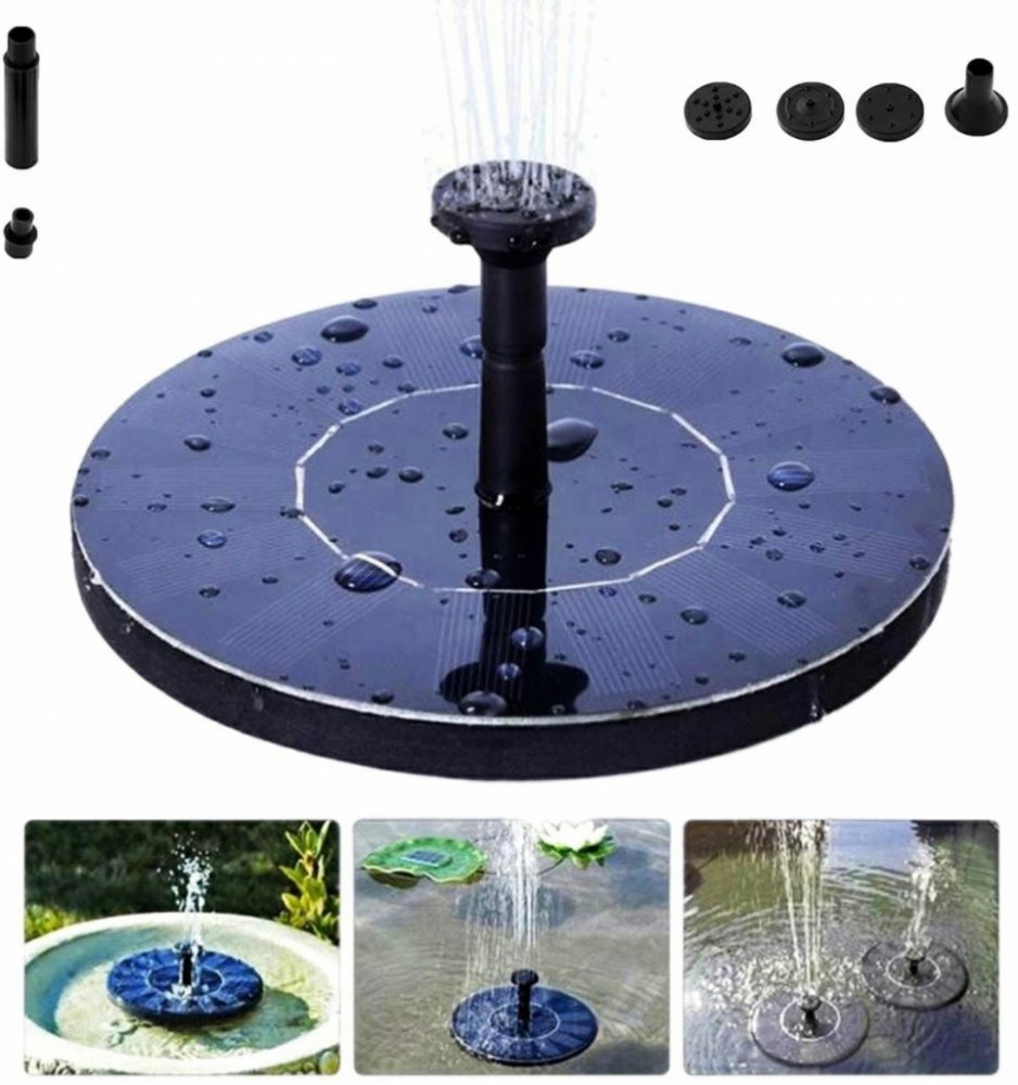 Jezírková fontána se solárním čerpadlem! Použití speciálního solárního panelu eliminuje potřebu dalšího zdroje energie. Nádhernou vodní kaskádu si užijete i v místech s nedostatkem elektřiny.POZNÁMKA: Čerpadla jsou určena pro použití v čisté vodě. Pokud hodláte používat zařízení s uzavřeným vodním okruhem, nezapomeňte pravidelně čistit filtry a samotné zařízení. Vlastnosti produktu: Zcela nový, vysoce kvalitní produkt. Žádná závislost na zdroji energie díky použití solárního panelu. Plná automatizace – zařízení funguje za slunečných dnů . Čerpadlo nefunguje v noci nebo za oblačného počasí. Vysoký průtok vody: až 150 litrů za hodinu! Vodní kaskáda dosahuje za slunečného počasí výšky až 50 cm. dnů. Několik vyměnitelných koncovek čerpadla pro změnu tvaru vody, která vystřeluje! Specifikace: Materiál: plast + solární panel Čerpadlo - technická specifikace: 7V, 160mA, 0,85W Výkon solárního panelu: 9V, 1,4W Maximální průtok vody: 150 l/hod. Výška vodního sloupce: od 30 cm do 50 cm (v závislosti na intenzitě slunečního záření) Průměr panelu: 16 cm Průměr otvoru čerpadla: 6 mm Hmotnost (čistá hmotnost): přibližně 200 g Barva: černá Včetně: Jezírková fontána se solárním panelem. Sada vyměnitelných koncovek.