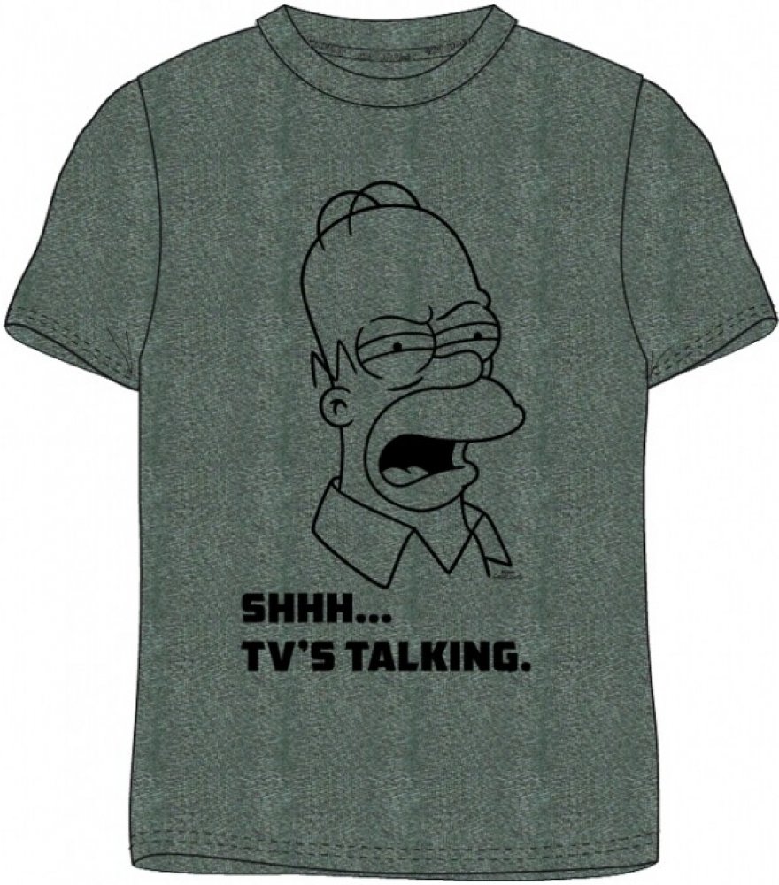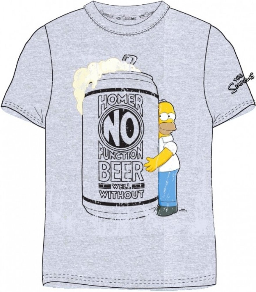 Pánské tričko s krátkým rukávem Homer Simpson, materiál: šedá melange 60% bavlna + 40% polyester, 160 gsm, barevné provedení světle šedé, přední strana barevný potisk /viz foto/. Velikost: M